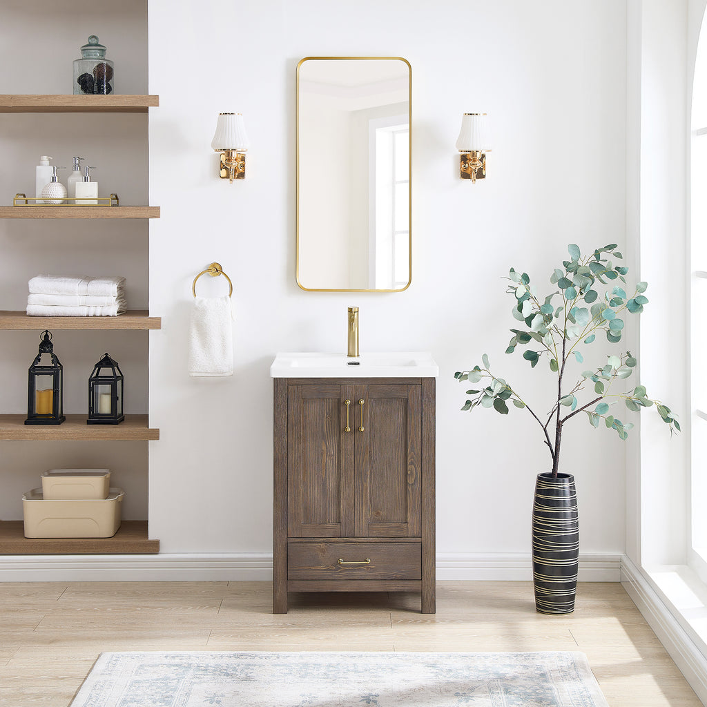 Gela 24" Single Sink Bath Vanity in Spruce Vintage Brown with Drop-In White Ceramic Basin