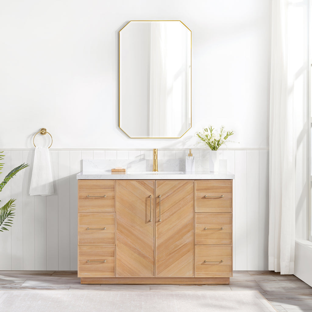 Javier 48" Free-standing Single Bath Vanity in Spruce Antique Brown with White Grain Composite Stone Top