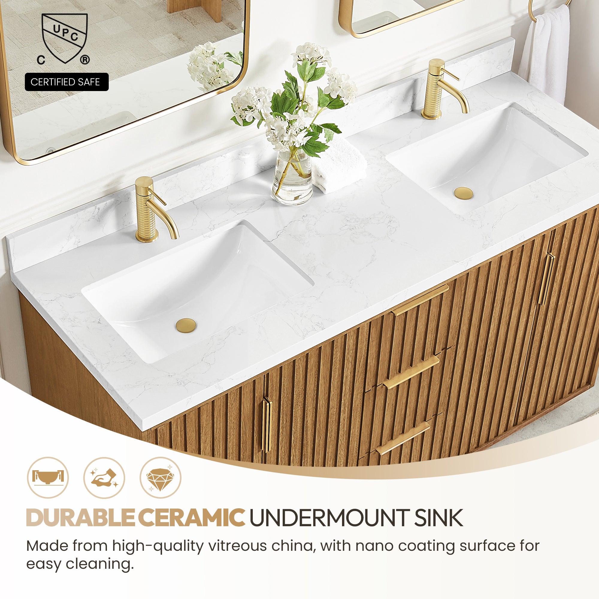 - Nano-Coated Basin: Bright white Nano anti-fouling coating ceramic undermount sink with overflow blends seamlessly with the stone vanity top.