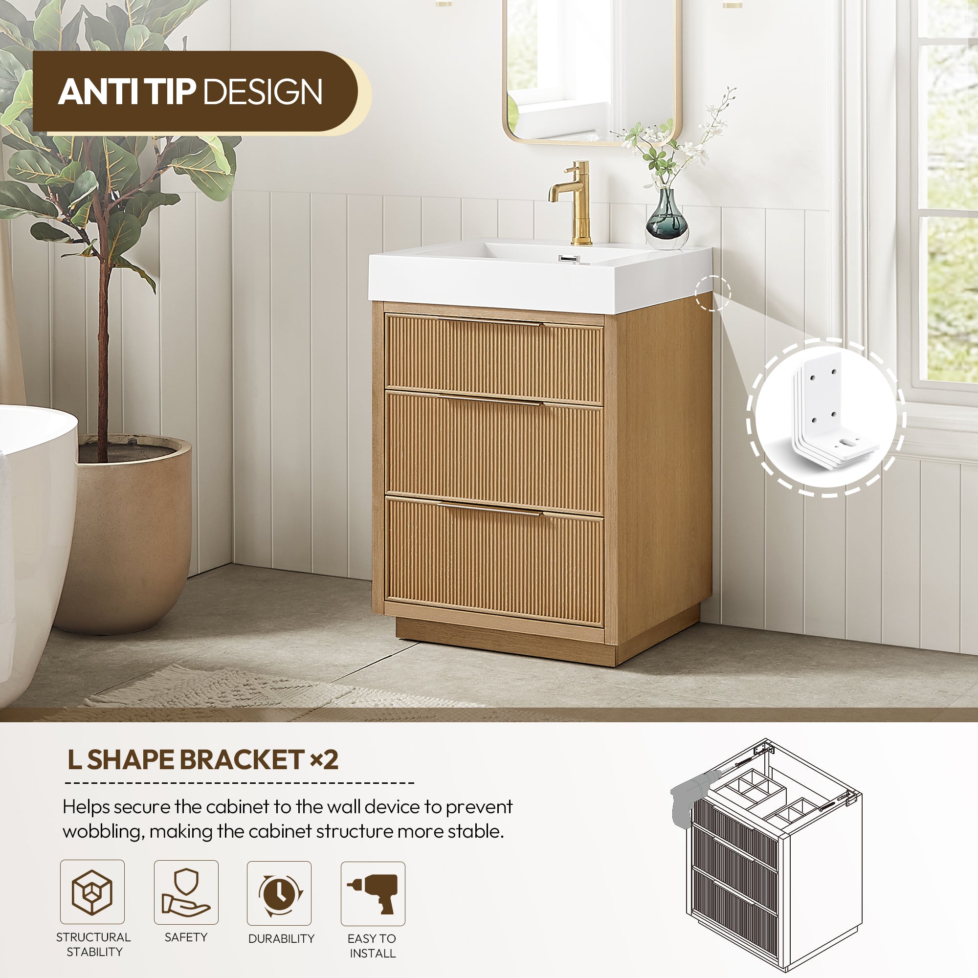 Hohhot 24" Free-standing Single Bath Vanity in Washed Ash Grey with White Integrated Stone Sink Top