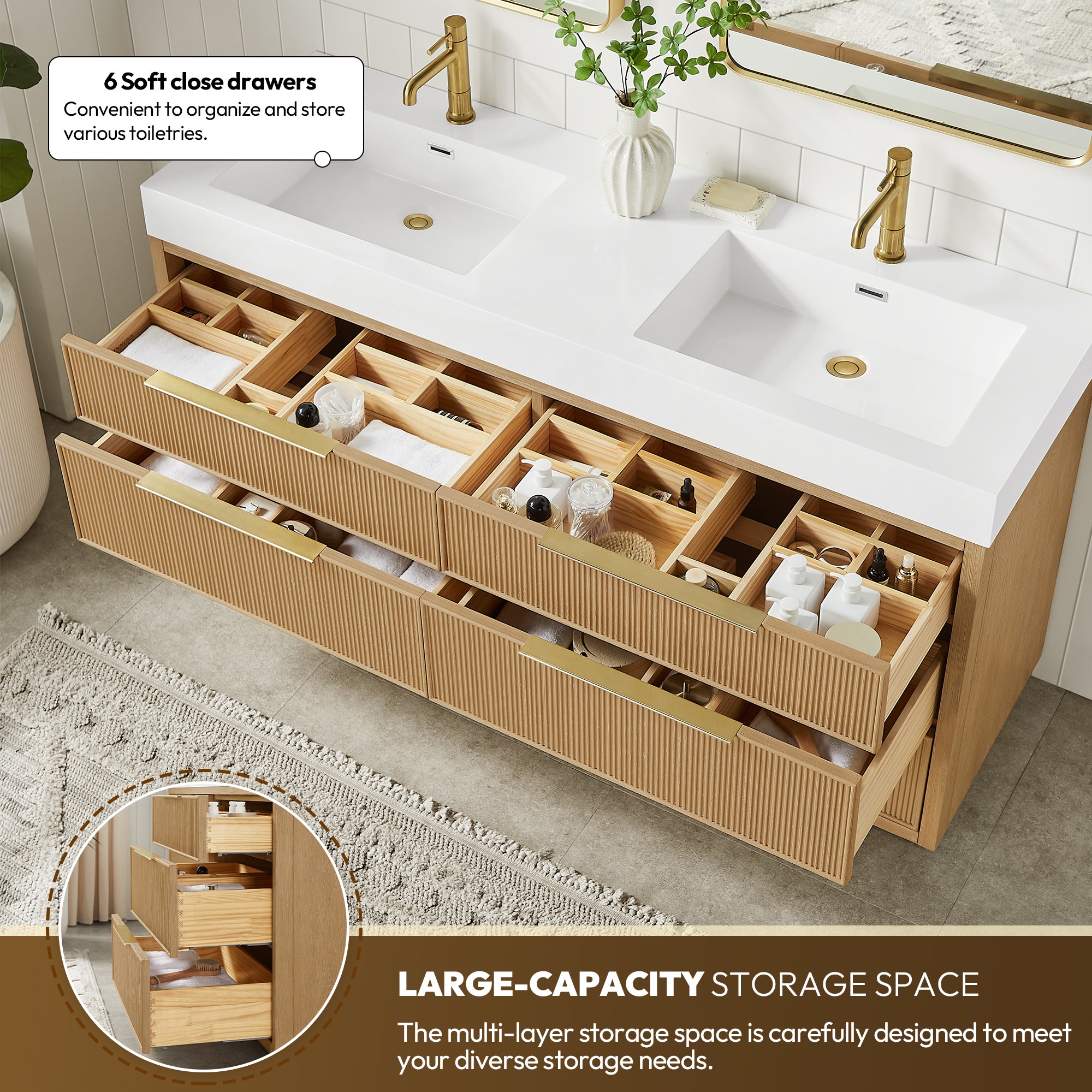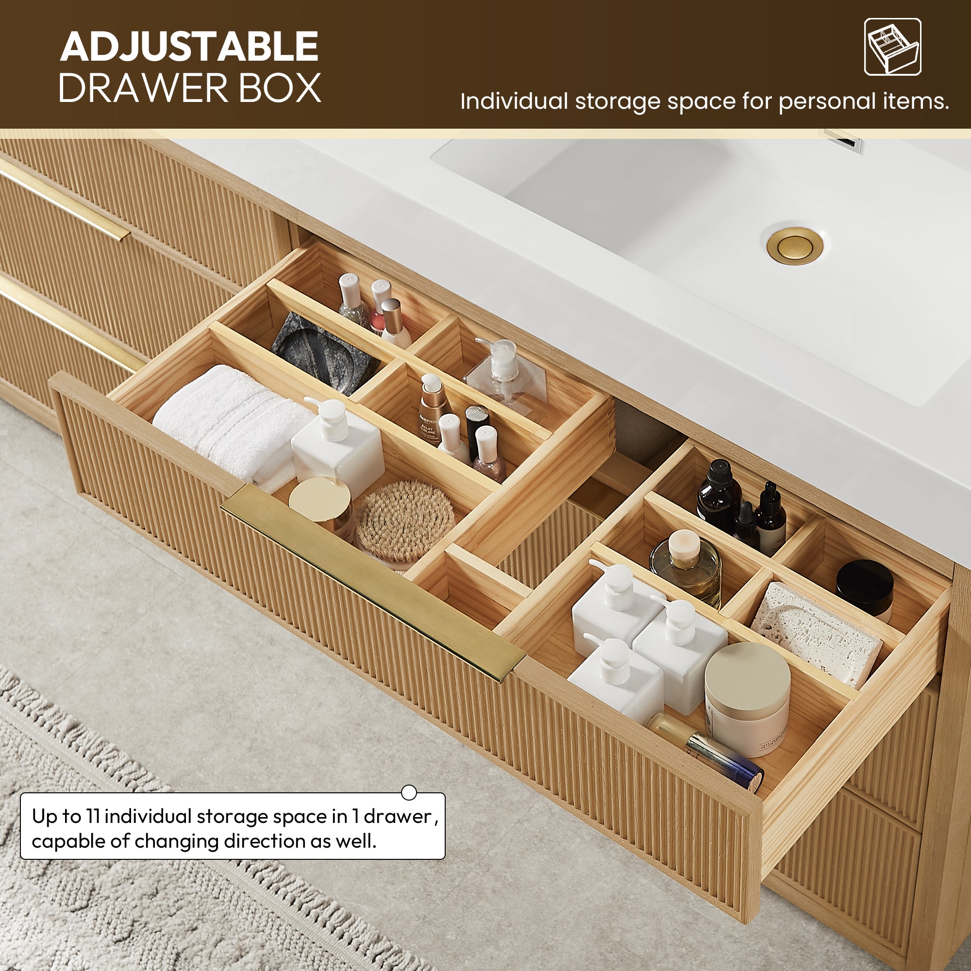 - Ample Storage Space: Six sturdy, soft-closing bamboo rattan-paneled dovetail drawers are hand-spliced and offer ample space for all your toiletries. Built-in partition storage space in the drawer allows you to keep toiletries and other items neatly organized.