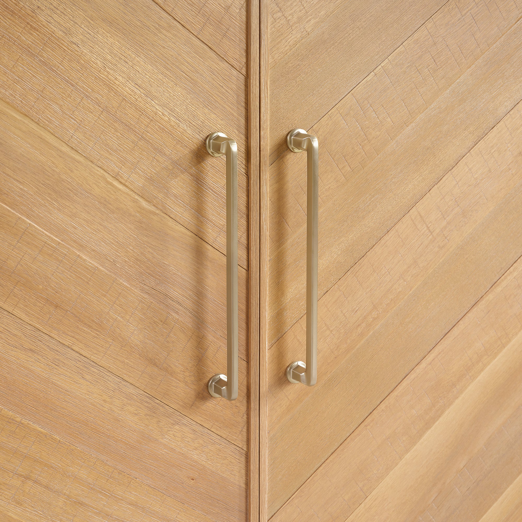 - High-Quality Hardware: Sophisticated Brushed Gold handles add a cool touch of style and contrast against the textured wood.