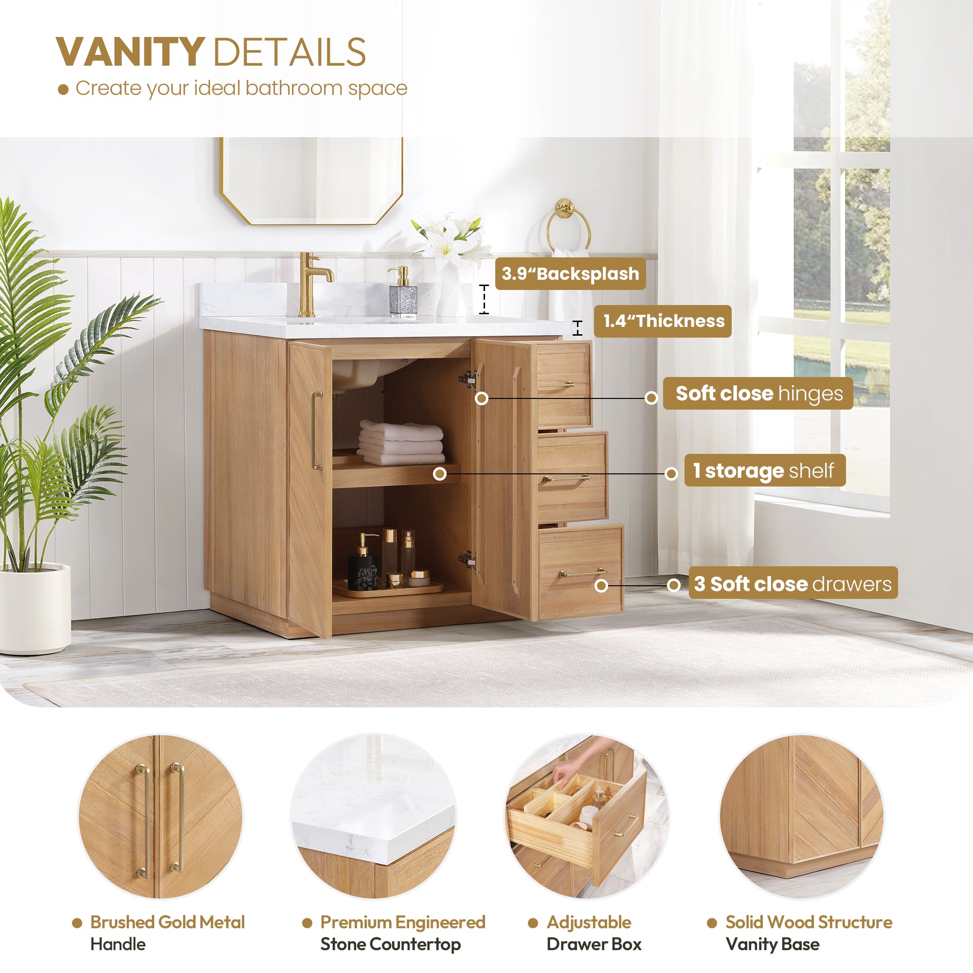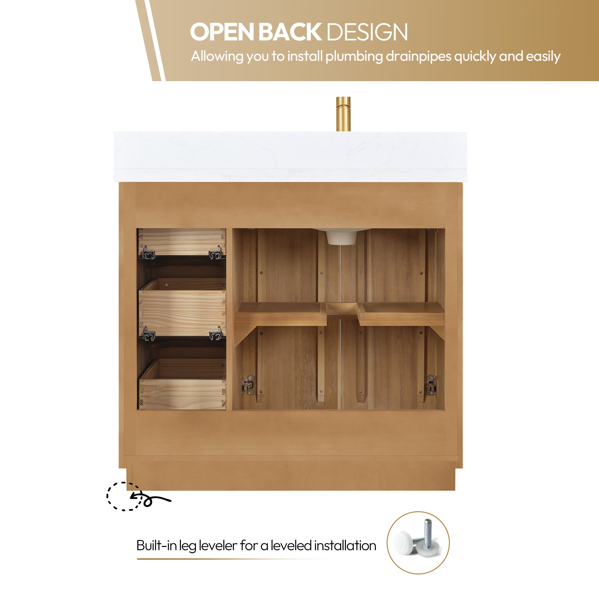 - No Installation Required: Freestanding bathroom vanity (without back panel) comes fully assembled for your convenience. Designed for easy, no-hassle plumbing and faucet installation.