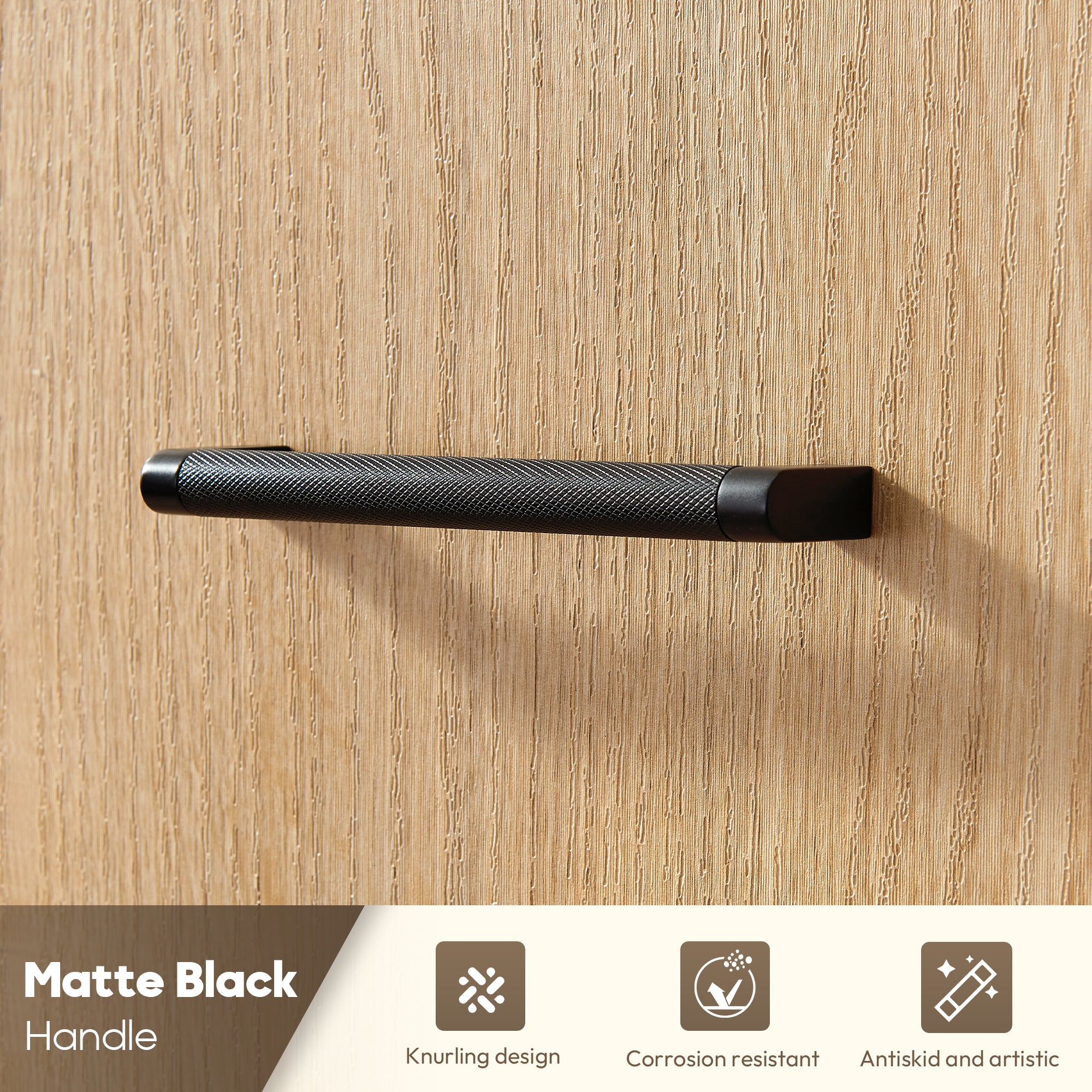 - Matching, High-Quality Handles: Elongated Matte Black or Brushed Gold handles add a cool touch of style and contrast against the textured wood.