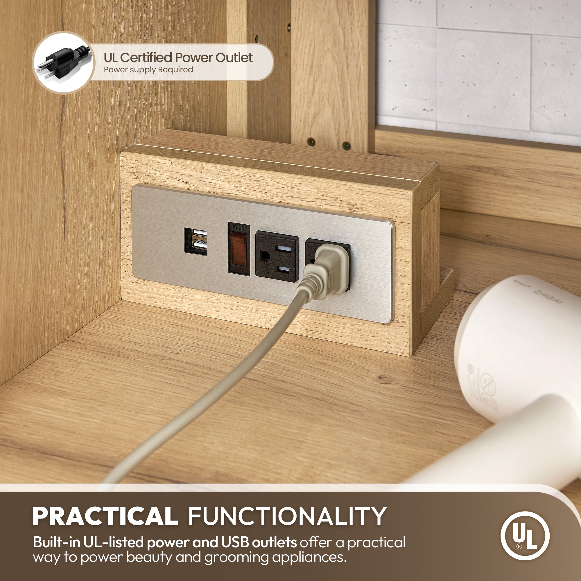 - Practical Functionality: Built-in UL-listed power and USB outlets offer a practical way to power beauty and grooming appliances.