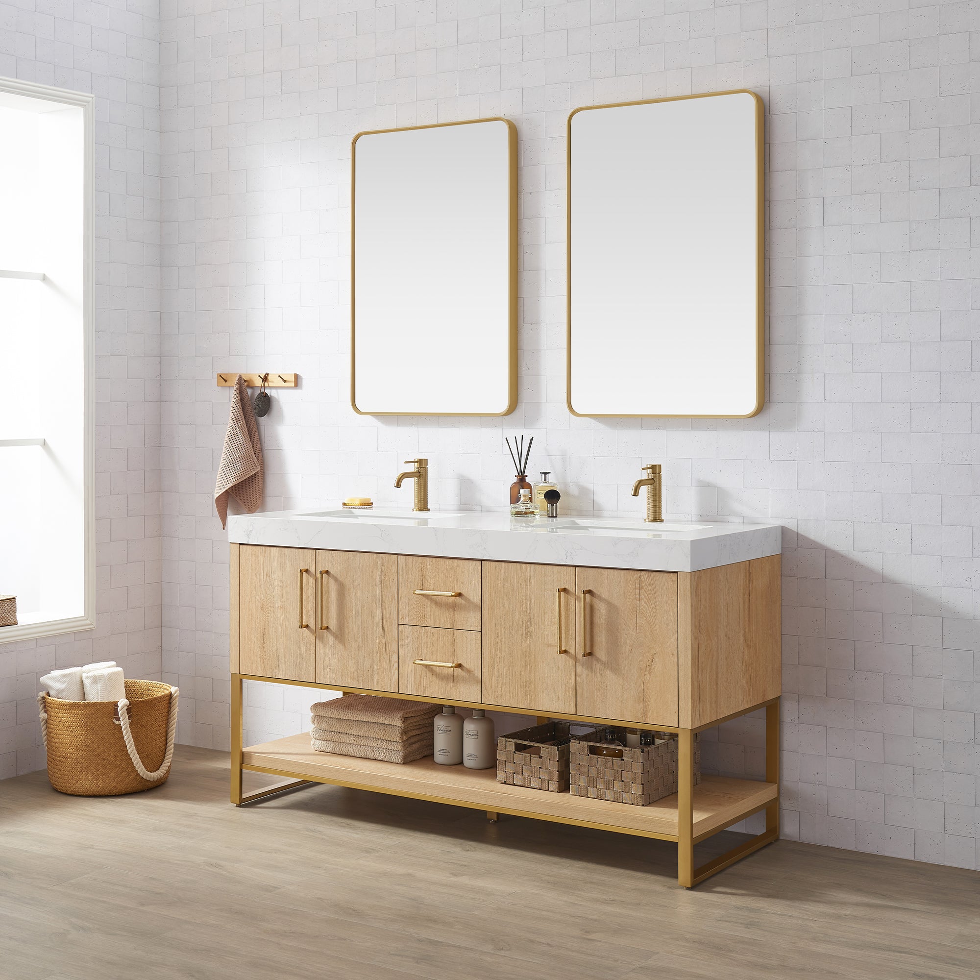 - Matching Mirrors: Double, rectangular, aluminum-framed mirrors complement the vanity and tie it all together. (Mirror sold separately)