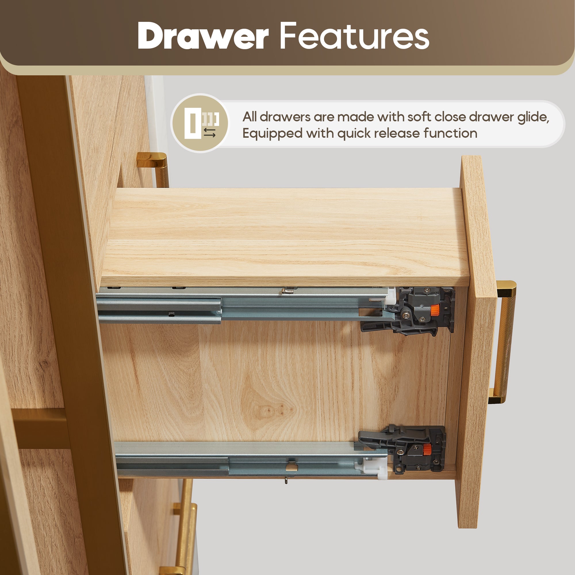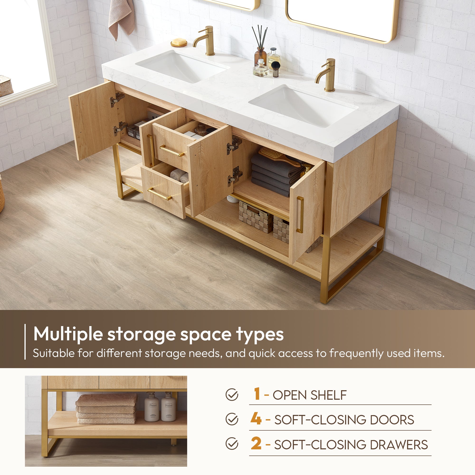 - Ample Storage Space: Four soft-closing doors and two soft-closing drawers along with a fixed open shelf offer ample space for all your toiletries.