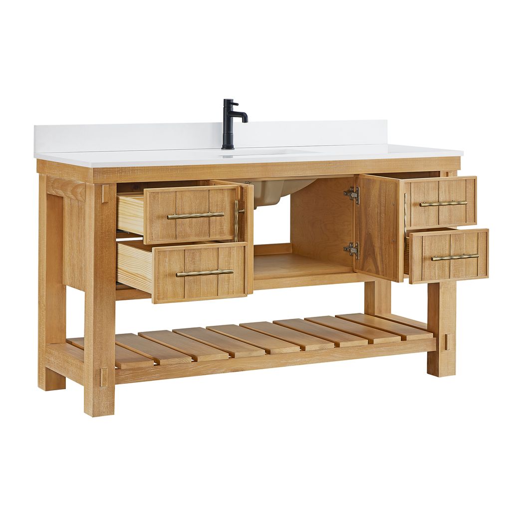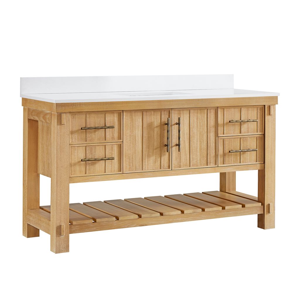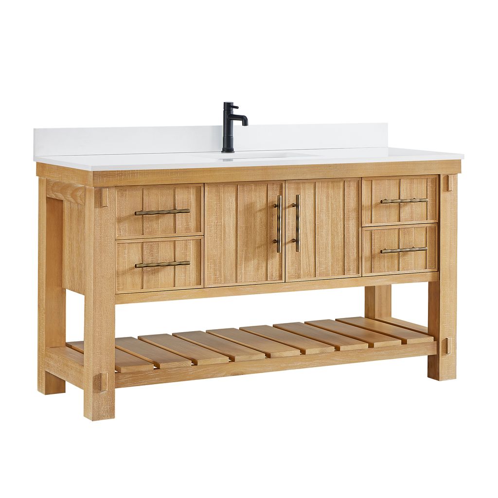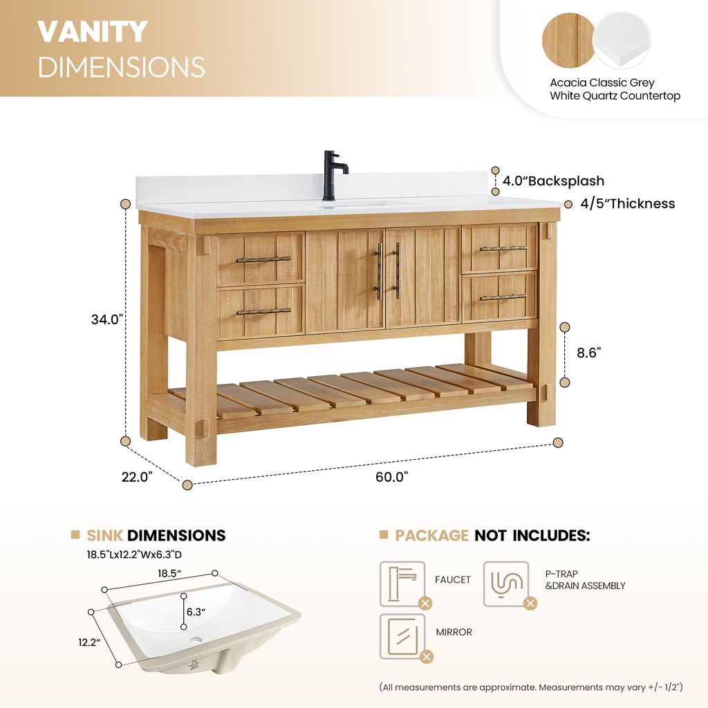 Paris 60" Free-standing Single Bath Vanity in Acacia Classic Grey with Pure White Quartz Stone Top