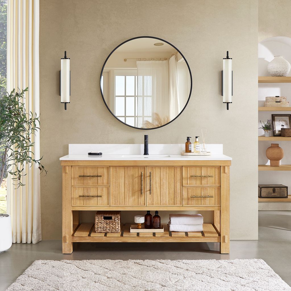 - Matching Mirror: Single, rectangular, aluminum-framed mirror complements the vanity and ties it all together. (Mirror sold separately)