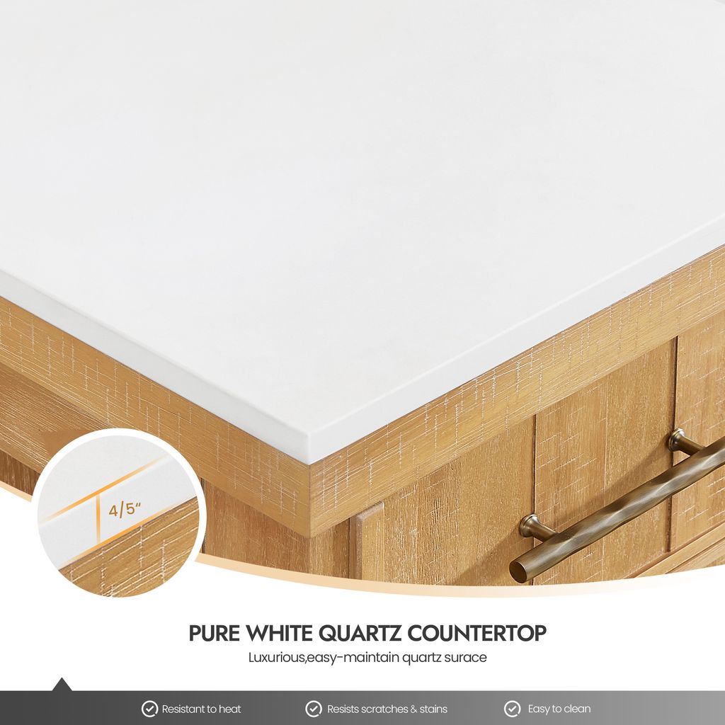 - Modern Top: 0.8"-thick, pure quartz countertop with backsplash lends a fresh and contemporary look. With a high-gloss, anti-fouling coating, the countertop is scratch-resistant, wear-resistant, and easy to clean.