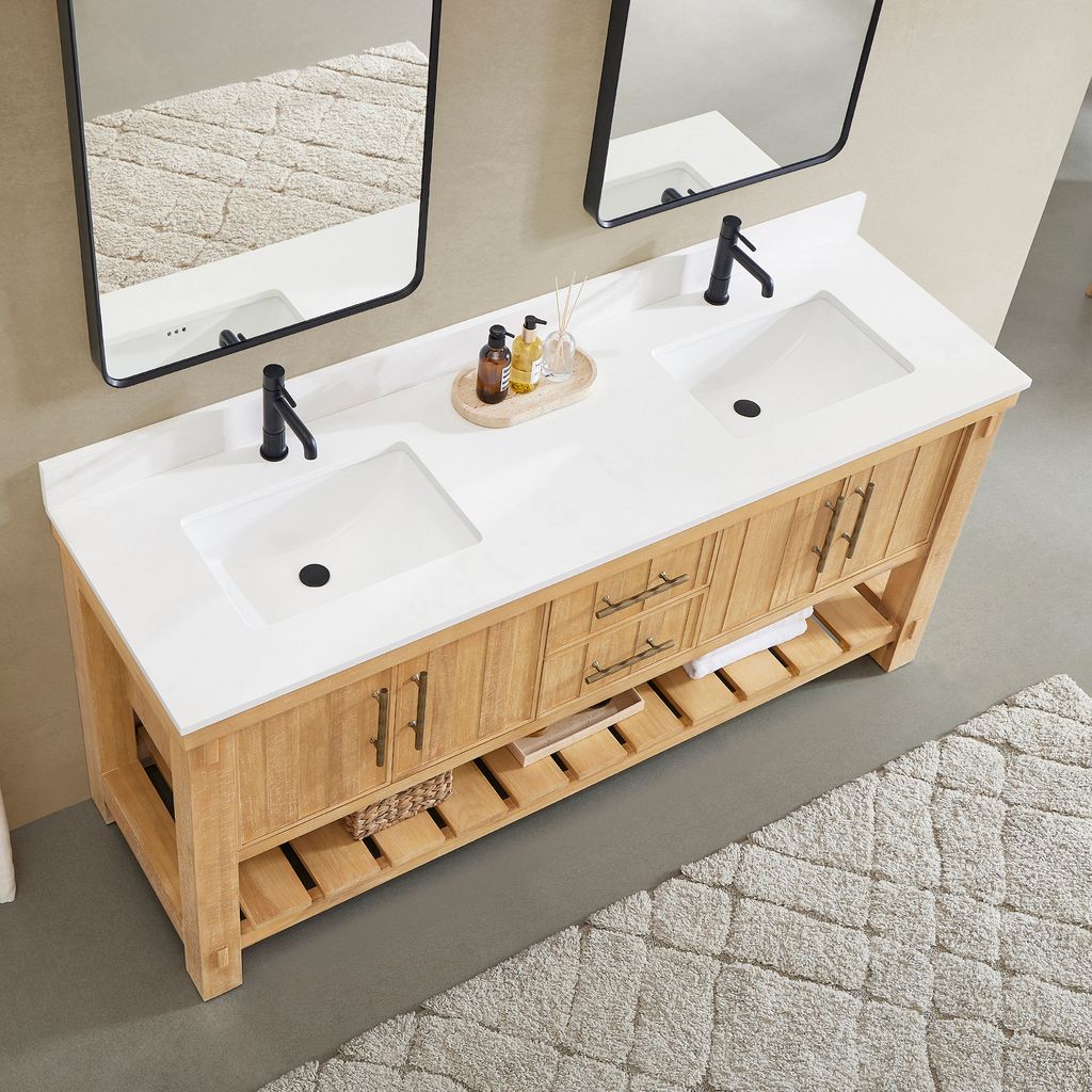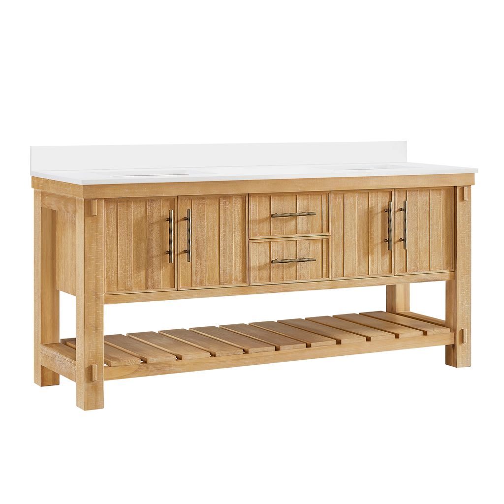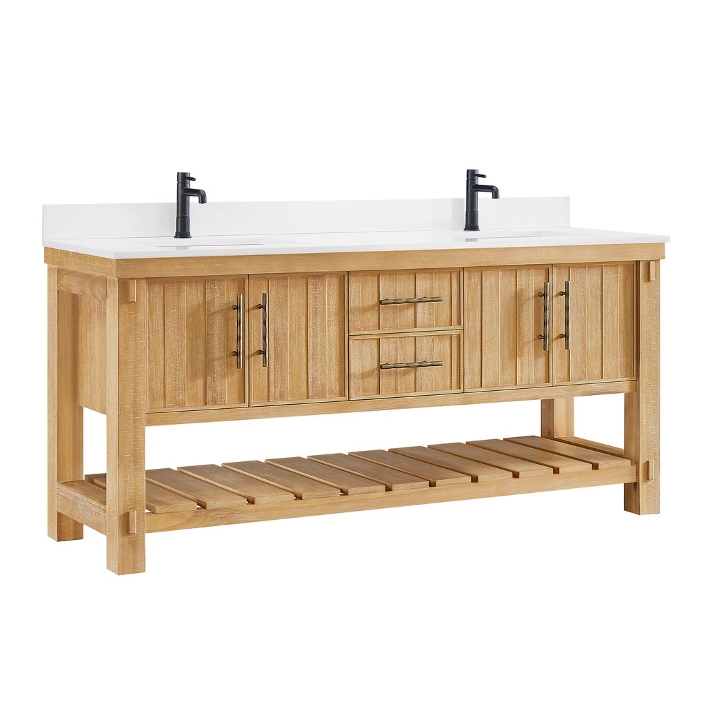 Paris 72" Free-standing Double Bath Vanity in Acacia Classic Grey with Pure White Quartz Stone Top