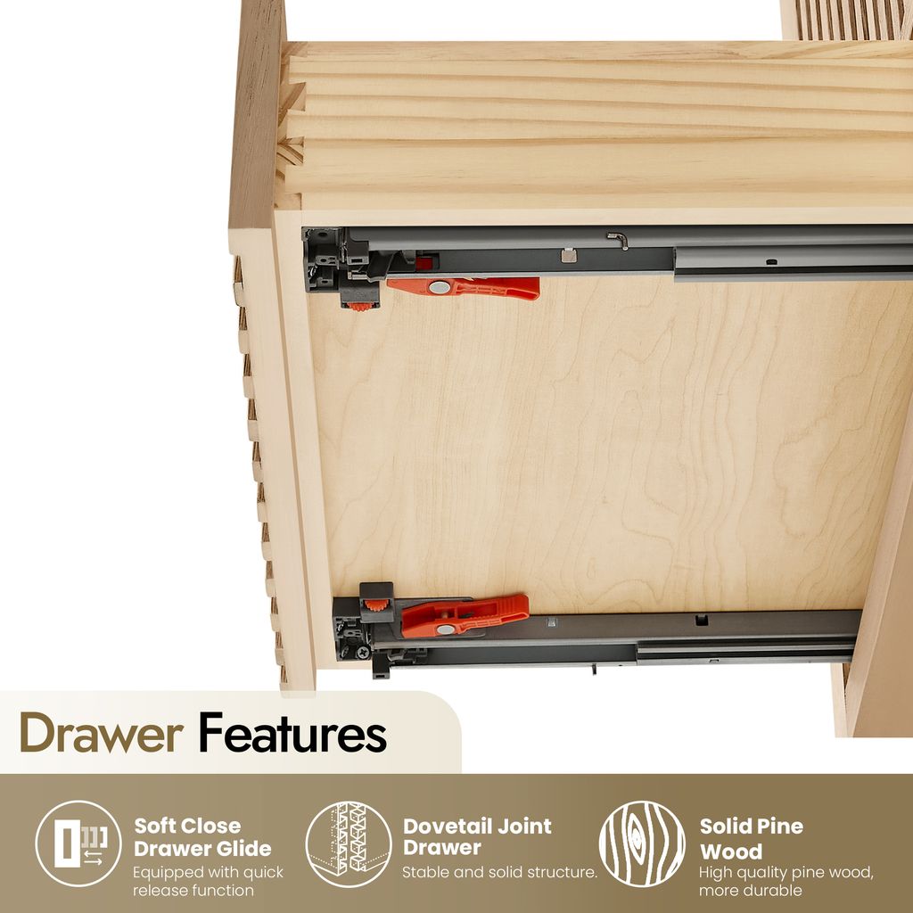 - Ample Storage Space: Two soft-closing, hand-spliced doors (door panel with anti-warping reinforcement strip) with one hand-spliced, soft-closing dovetail drawer offer ample space for all your toiletries.