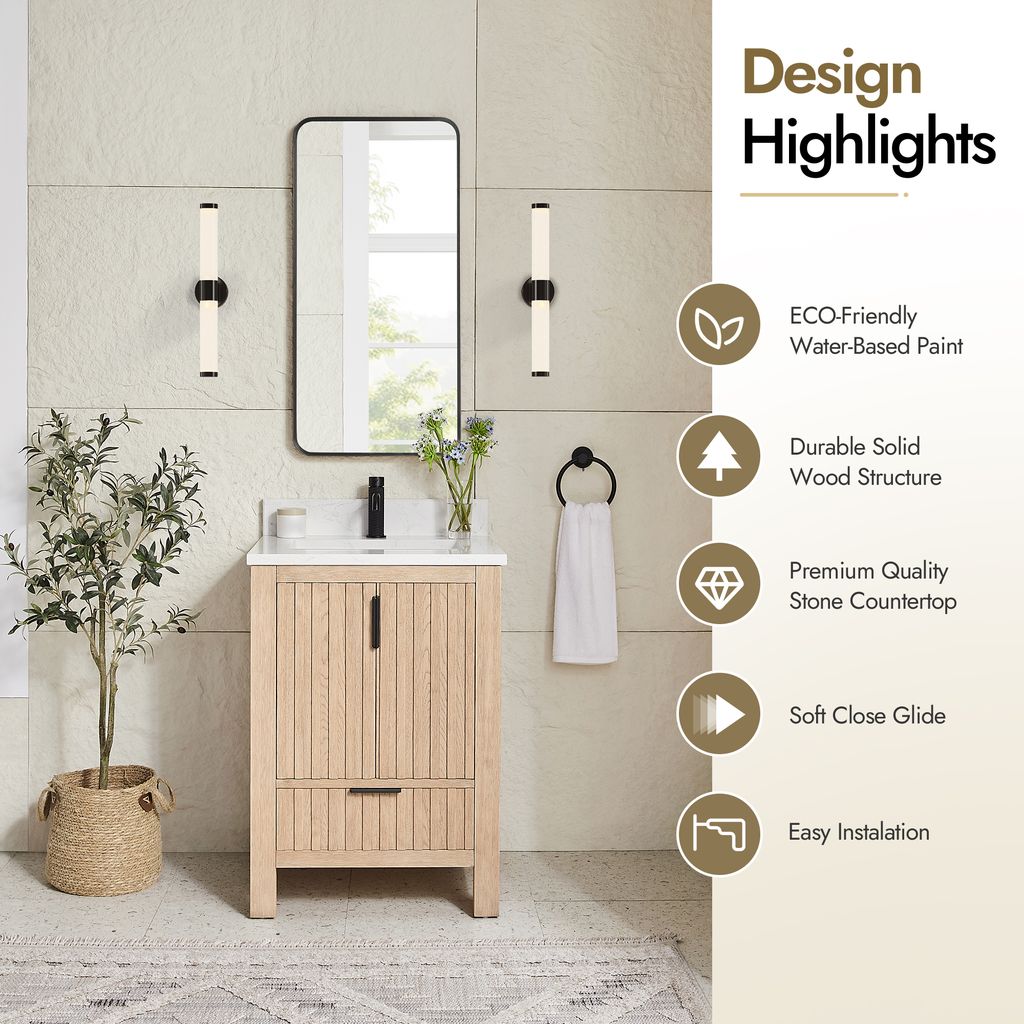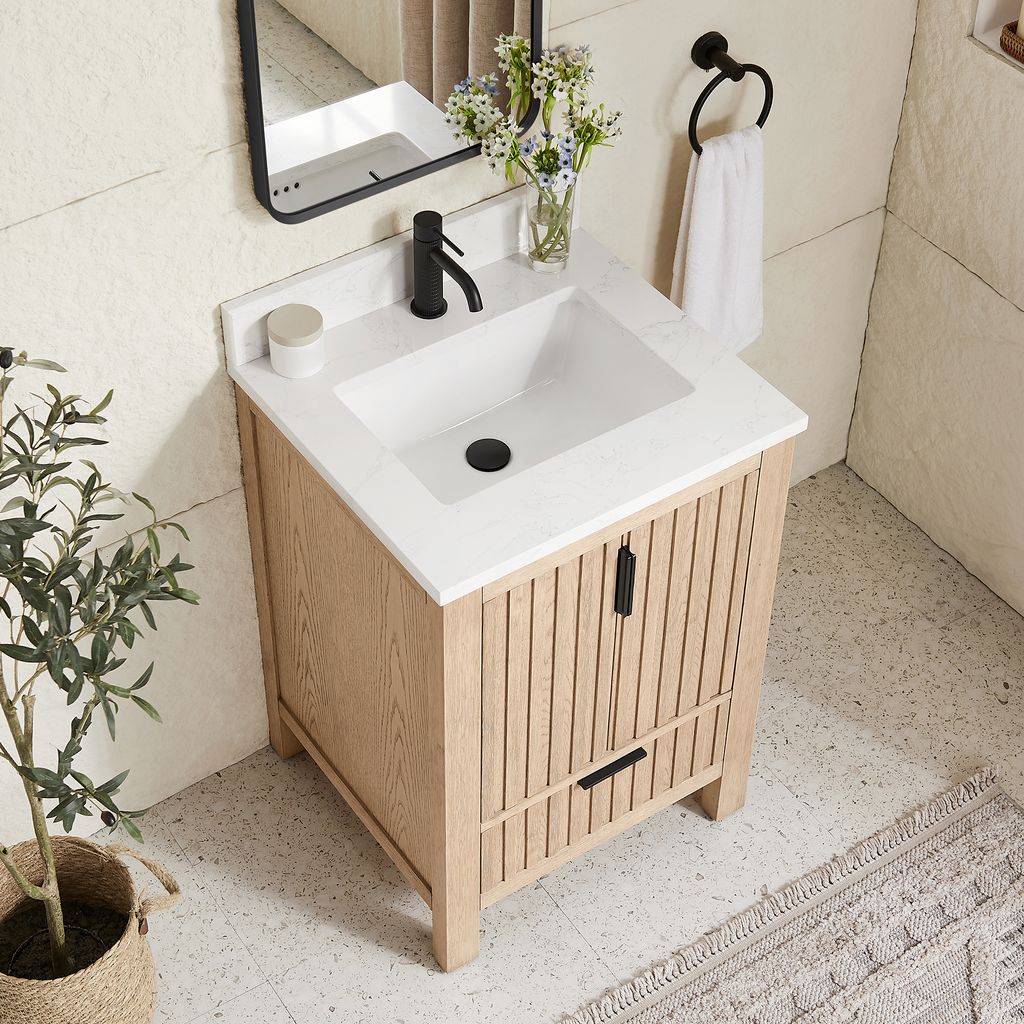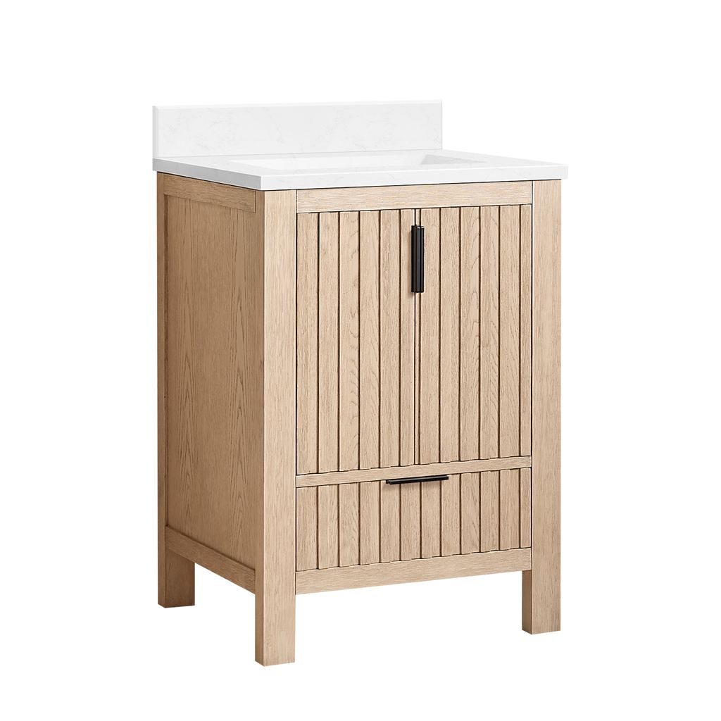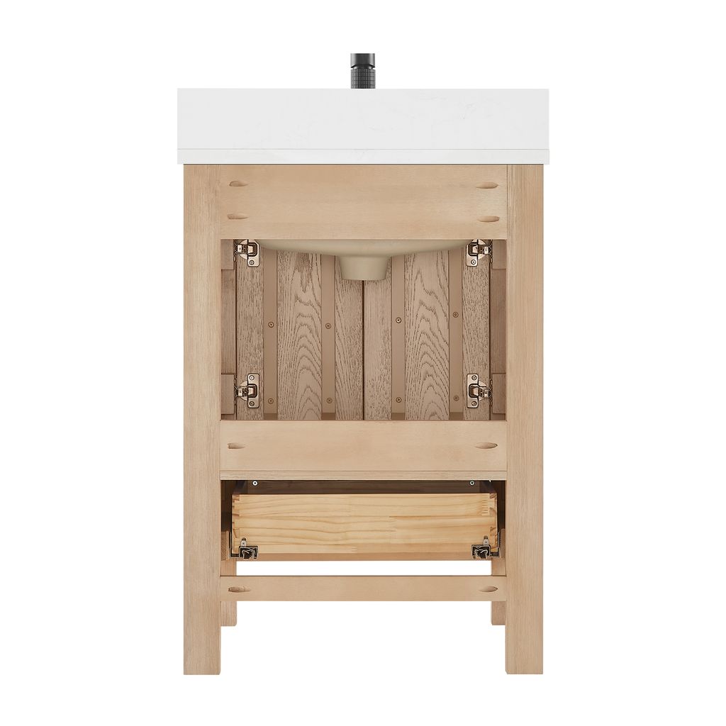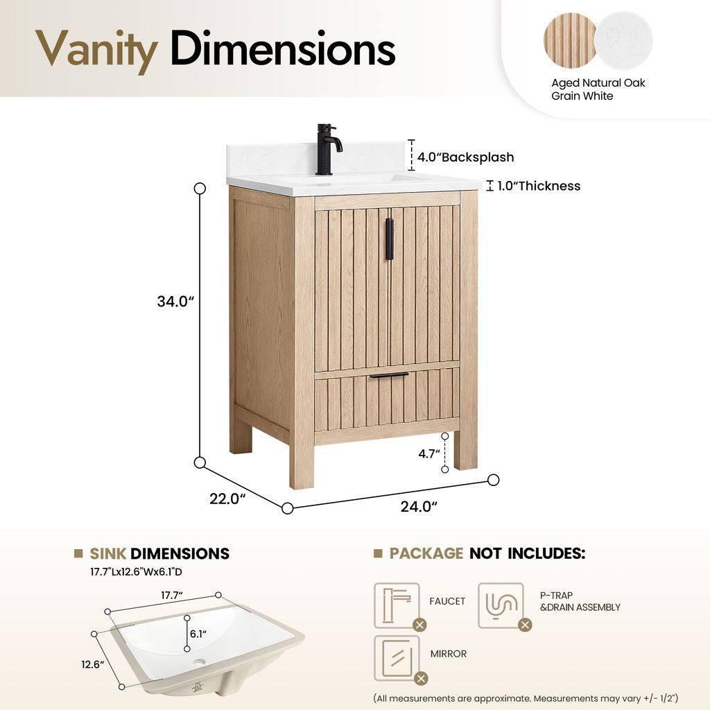 Shenzhen 24" Single Sink Bath Vanity in Aged Natural Oak with White Grain Composite Stone Top