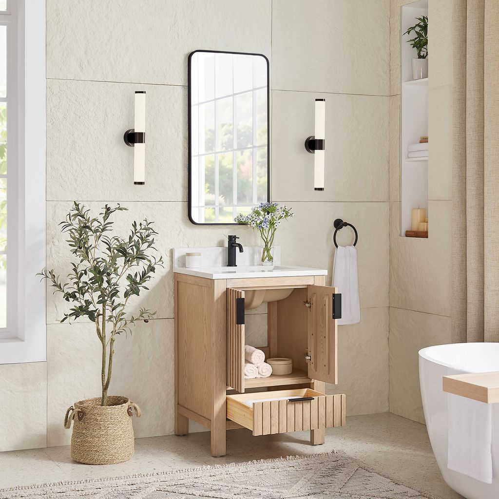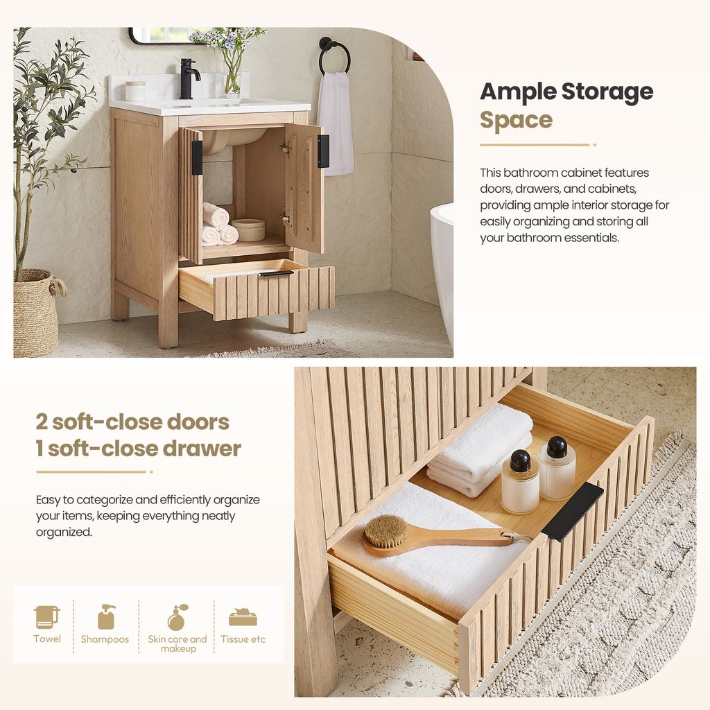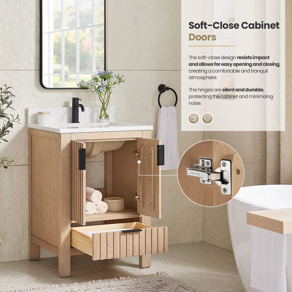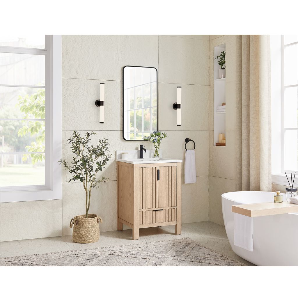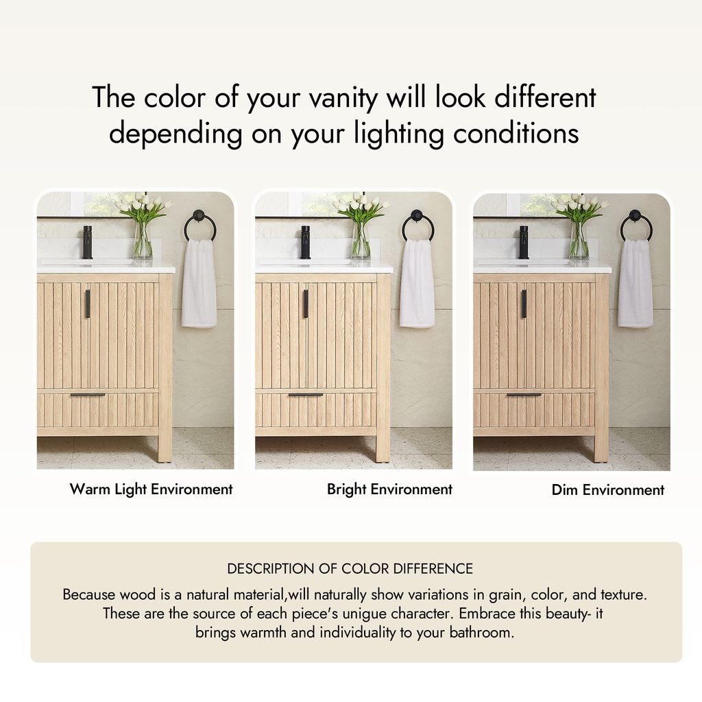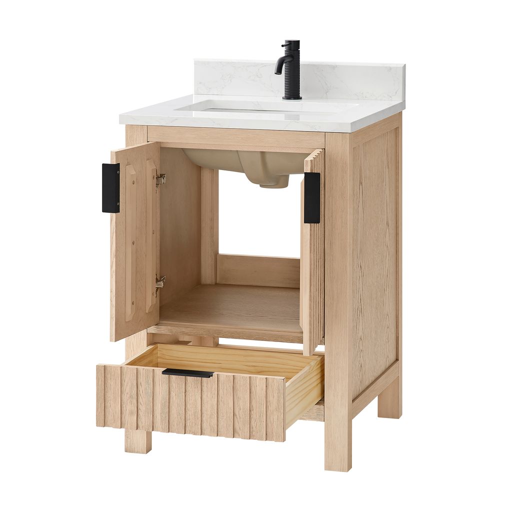 Shenzhen 24" Single Sink Bath Vanity in Aged Natural Oak with White Grain Composite Stone Top
