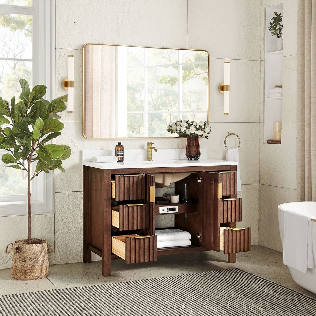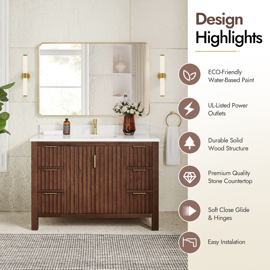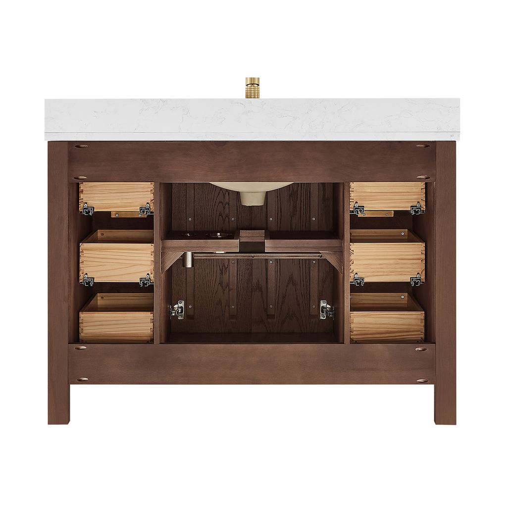 Shenzhen 48" Single Sink Bath Vanity in Aged Dark Brown Oak with White Grain Composite Stone Top