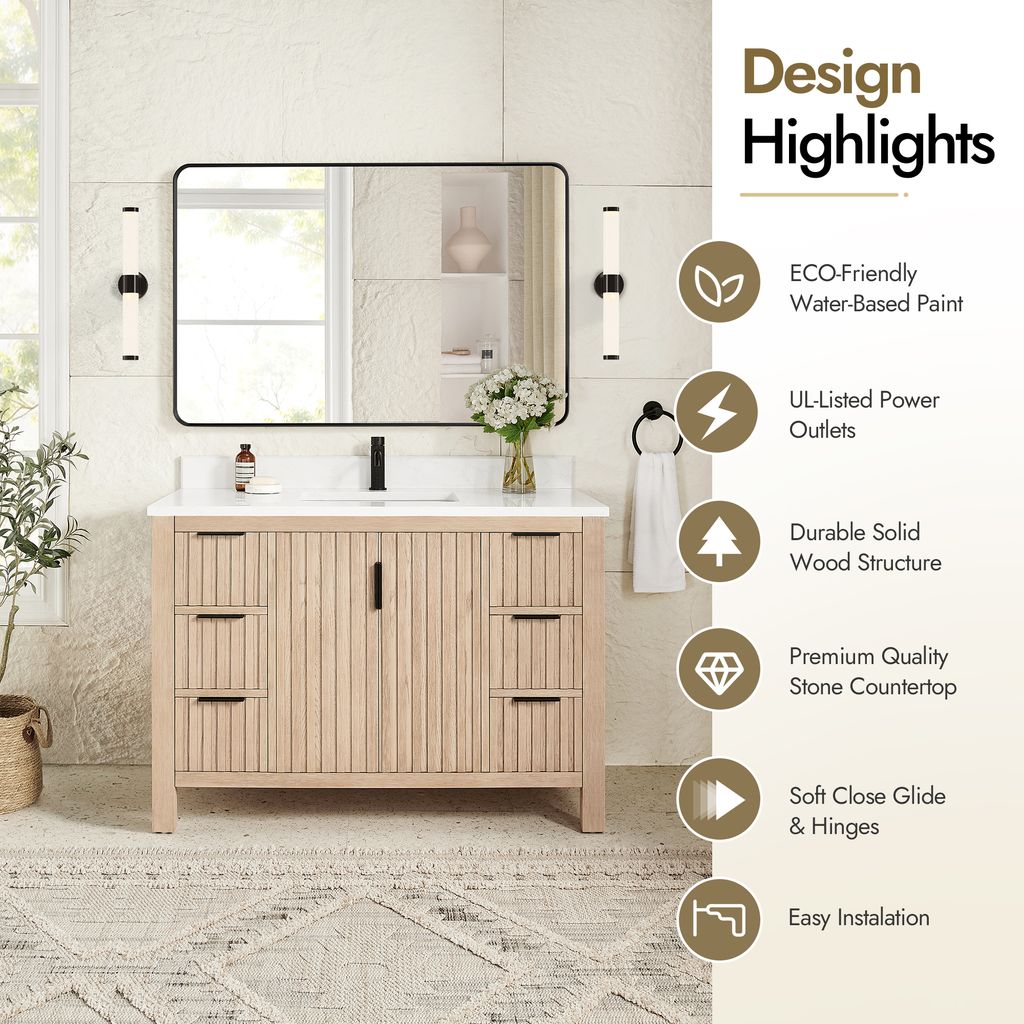 Shenzhen 48" Single Sink Bath Vanity in Aged Natural Oak with White Grain Composite Stone Top