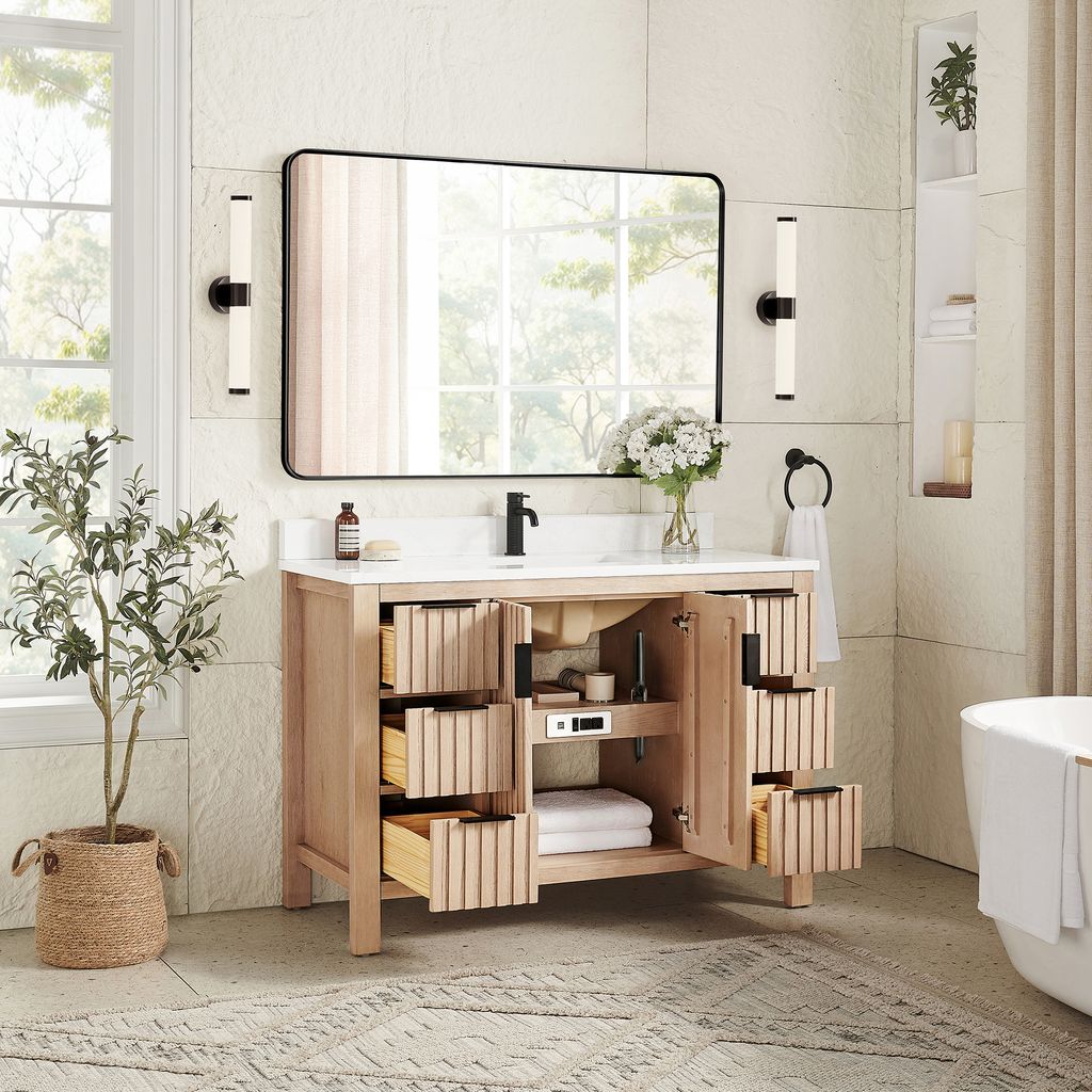 - No Installation Required: Freestanding bathroom vanity (without back panel) comes fully assembled for your convenience. Designed for easy, no-hassle plumbing and faucet installation.