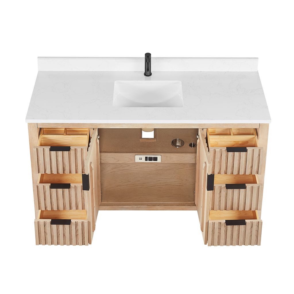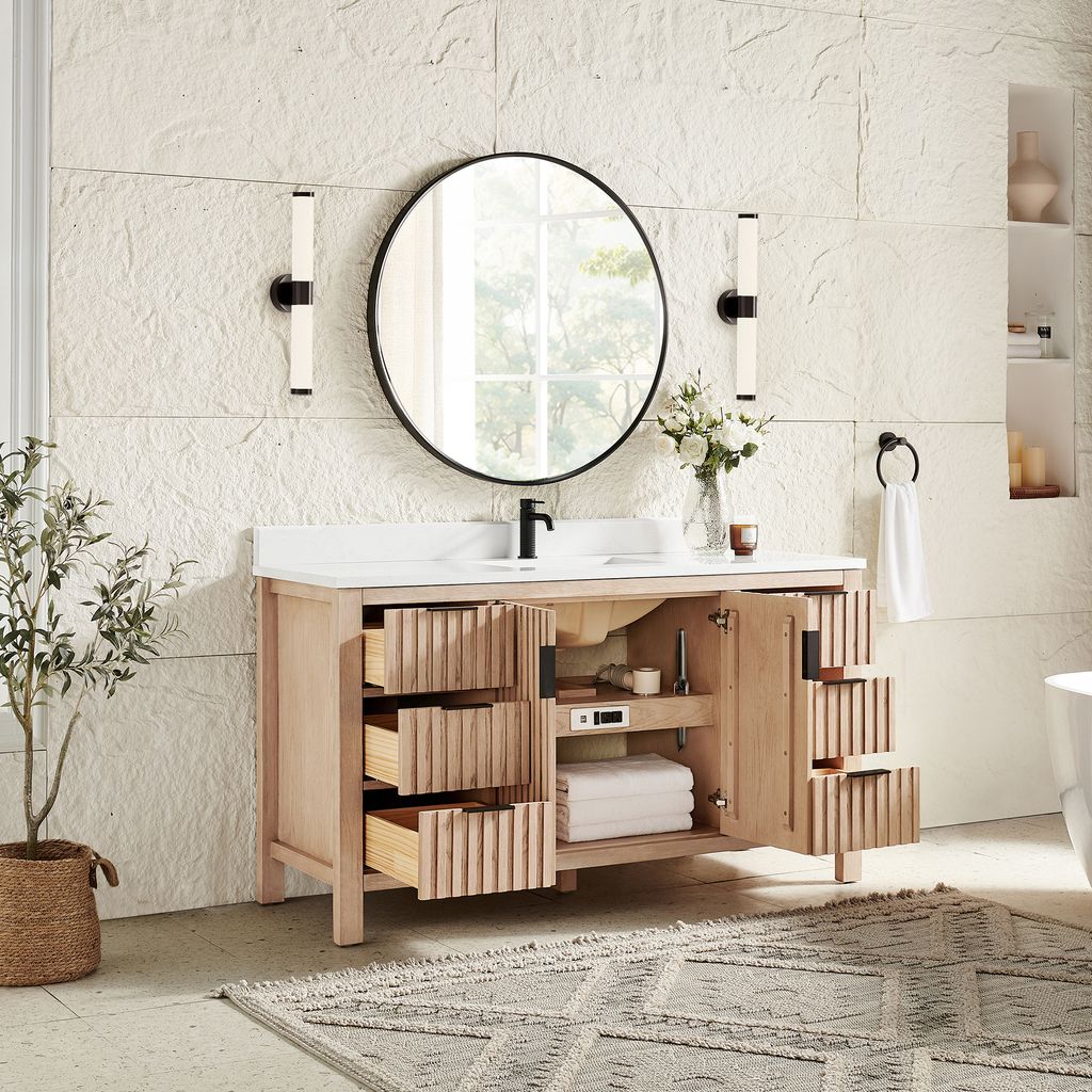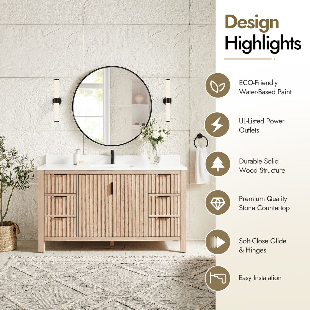 - No Installation Required: Freestanding bathroom vanity (without back panel) comes fully assembled for your convenience. Designed for easy, no-hassle plumbing and faucet installation.