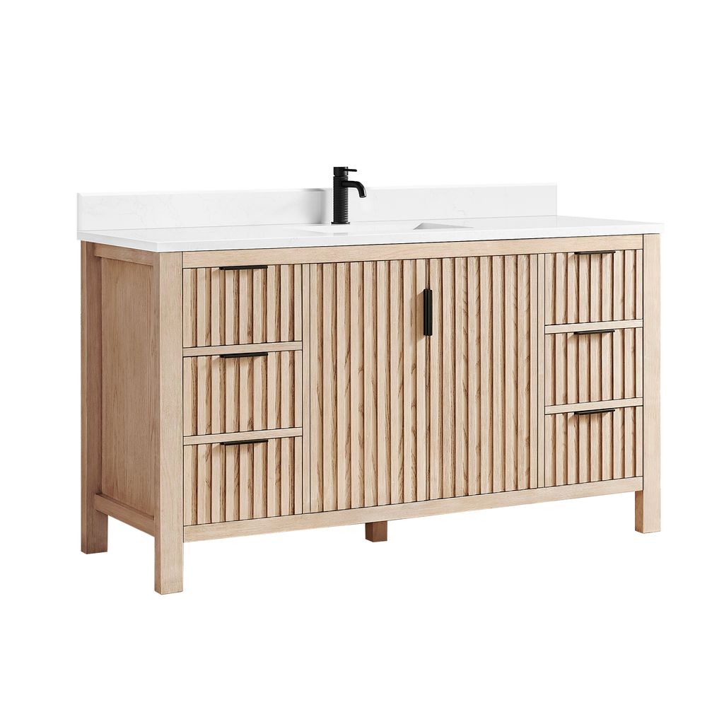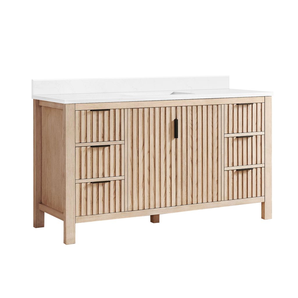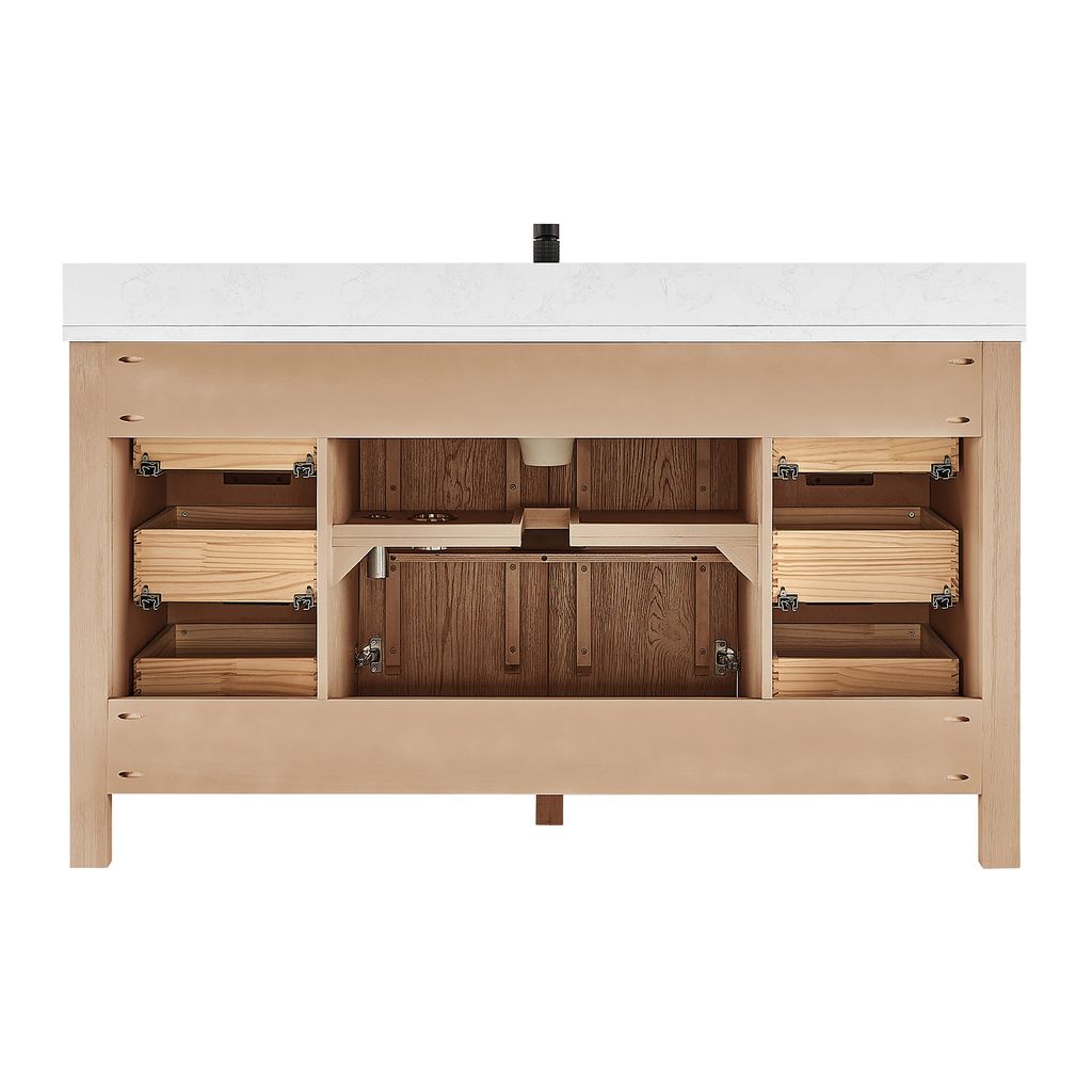 Shenzhen 60" Single Sink Bath Vanity in Aged Natural Oak with White Grain Composite Stone Top