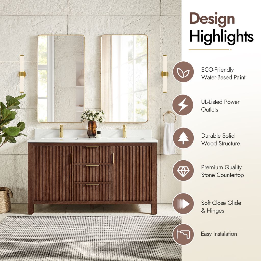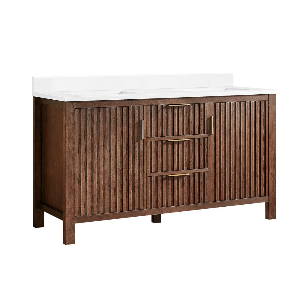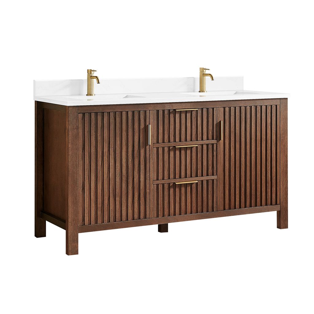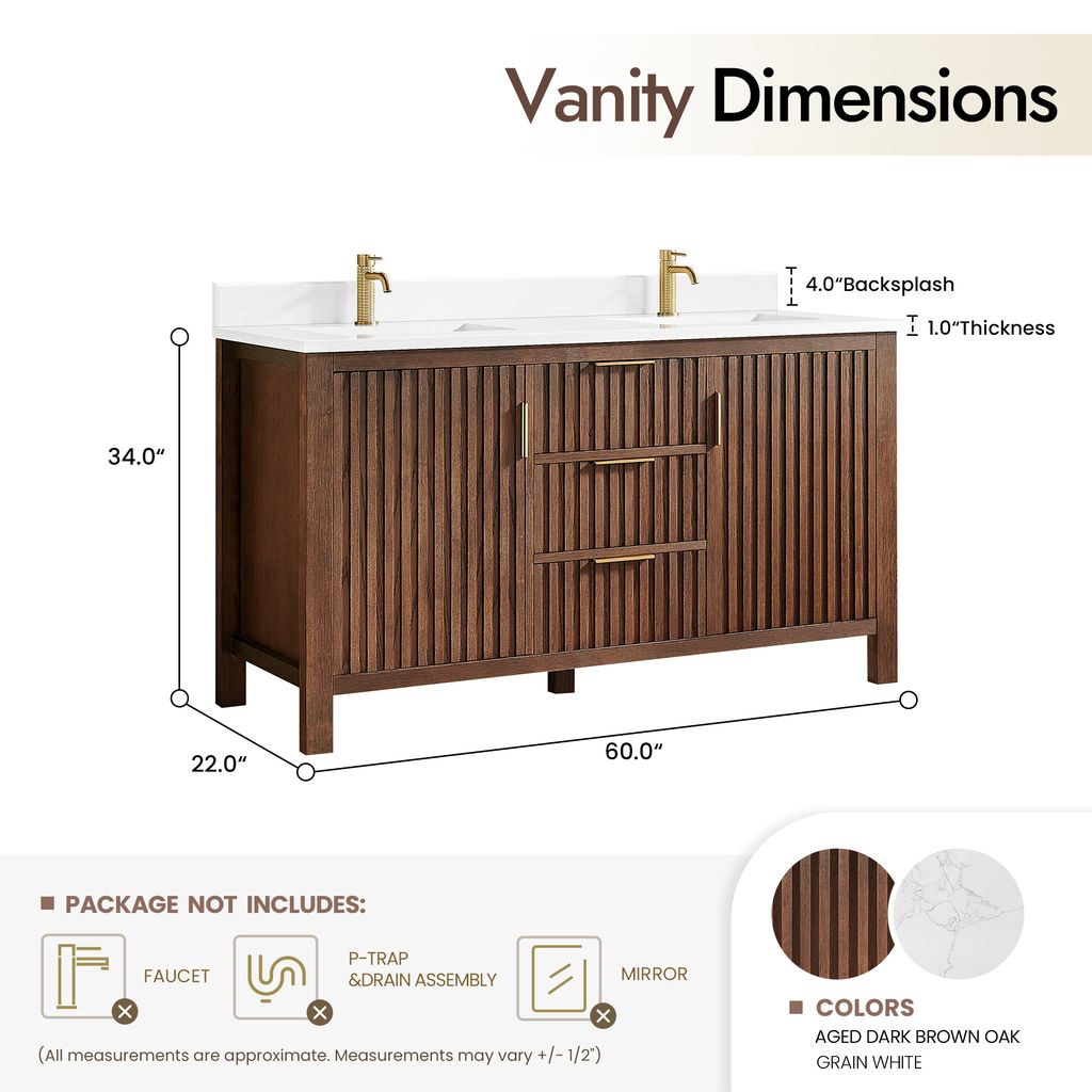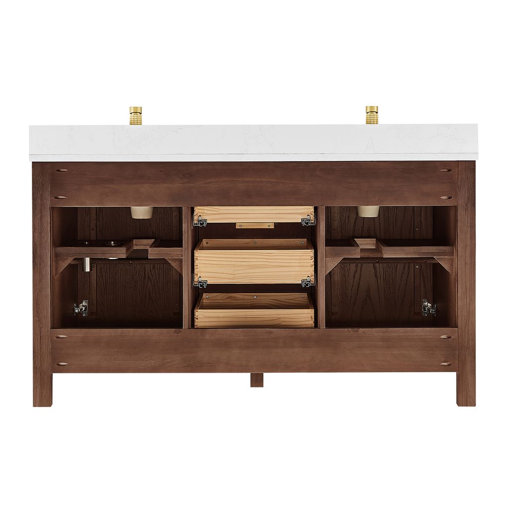 Shenzhen 60M" Double Sink Bath Vanity in Aged Dark Brown Oak with White Grain Composite Stone Top