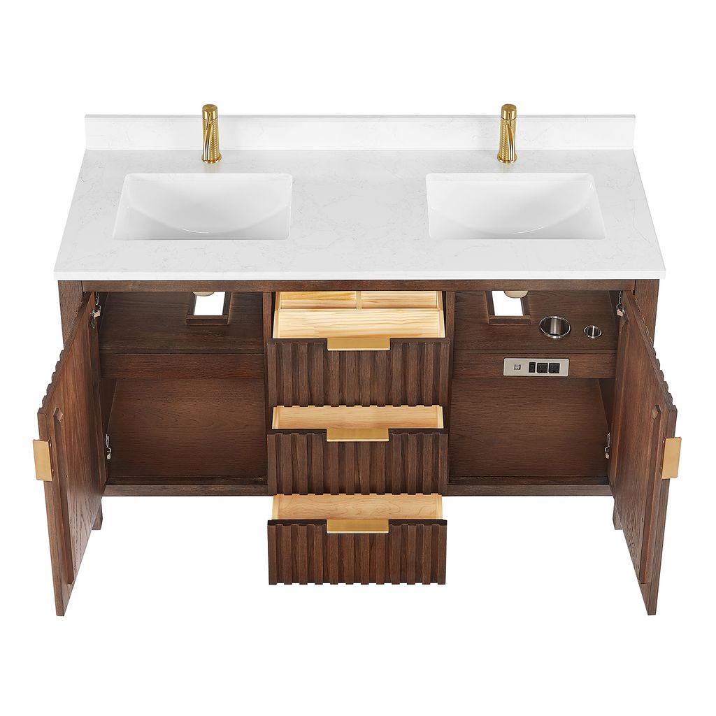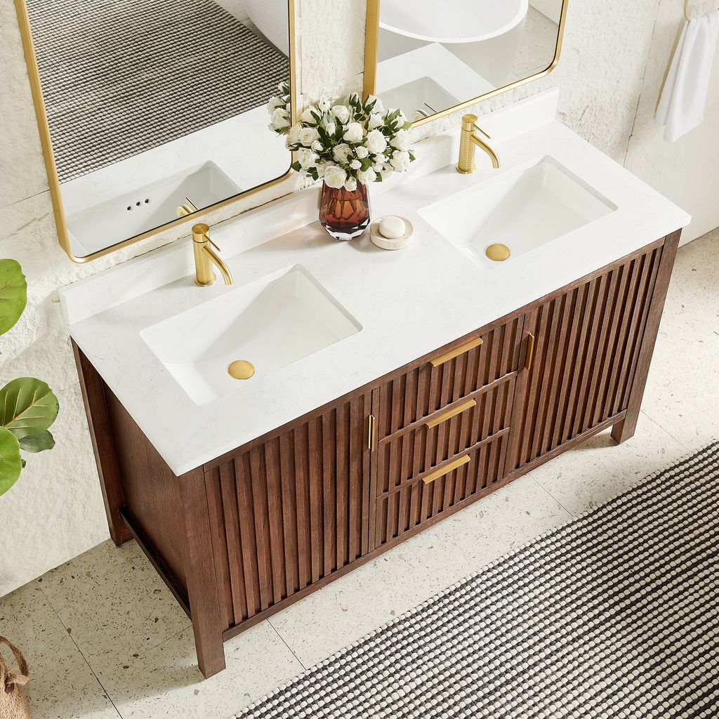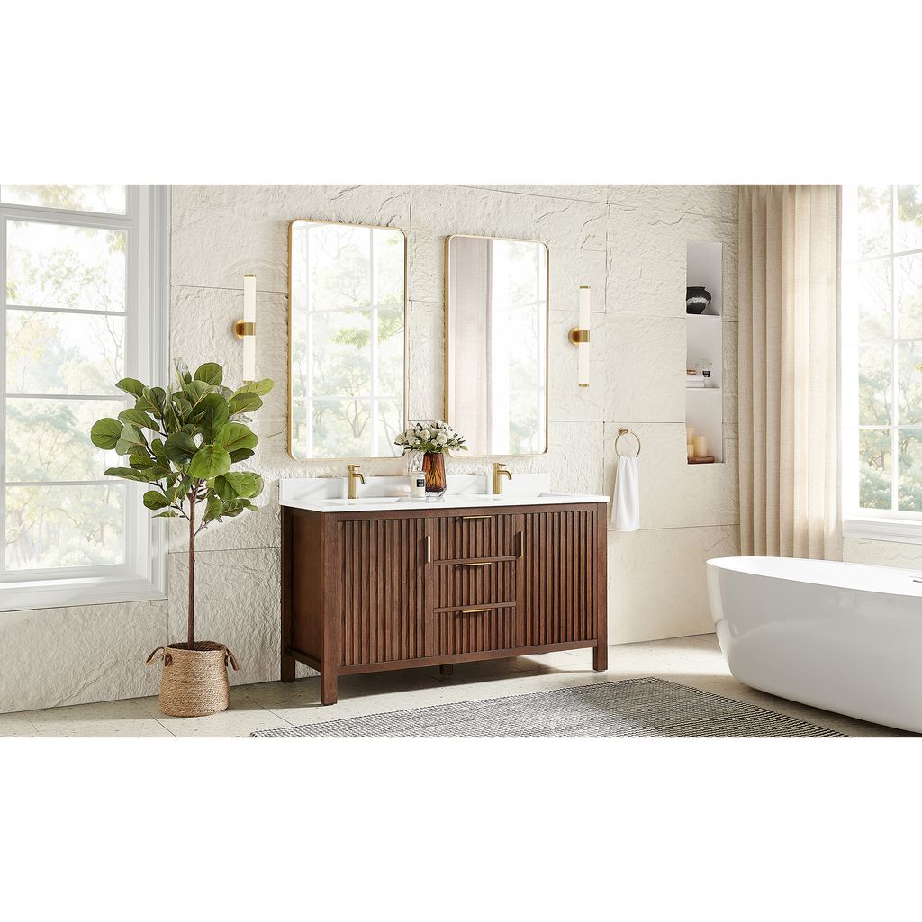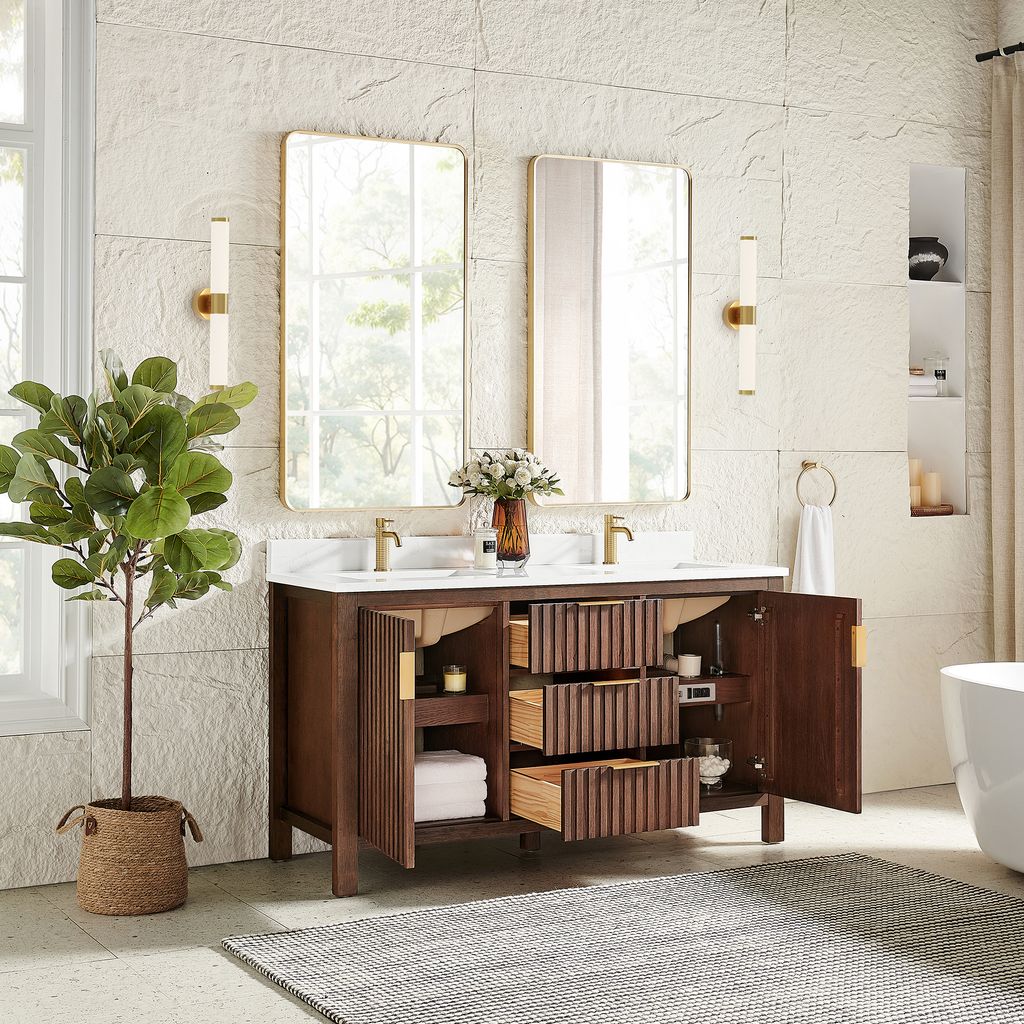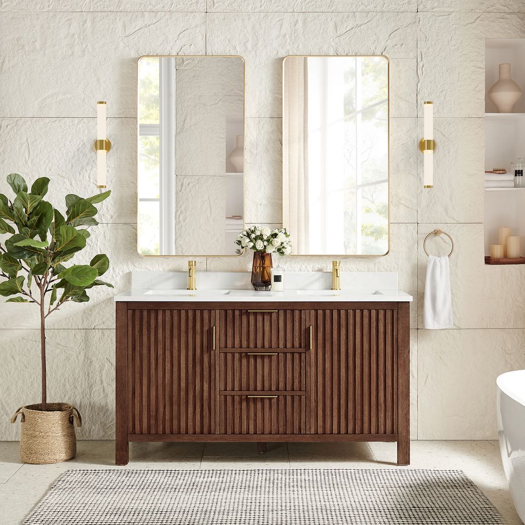 Shenzhen 60M" Double Sink Bath Vanity in Aged Dark Brown Oak with White Grain Composite Stone Top