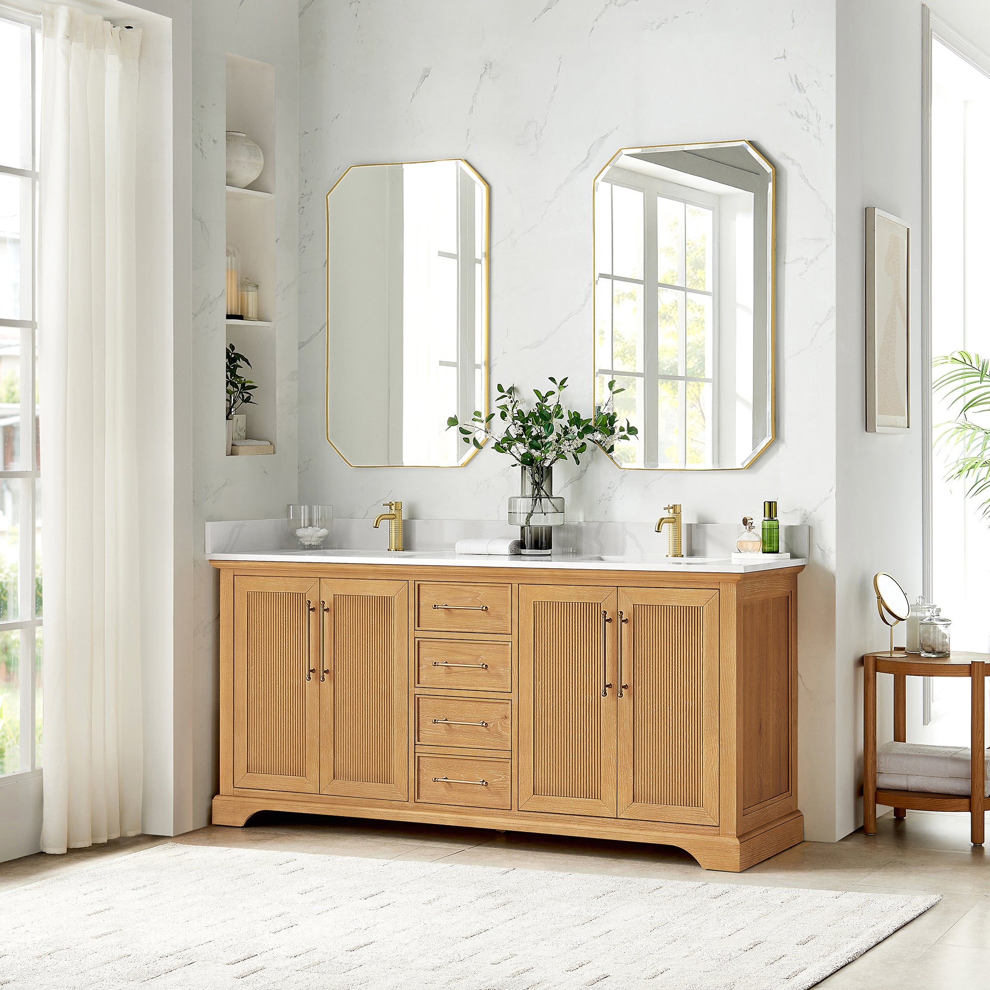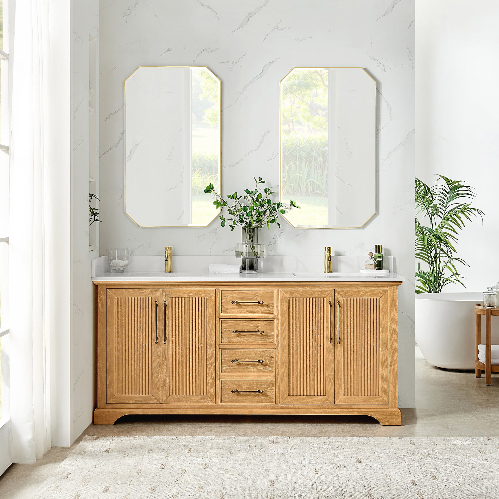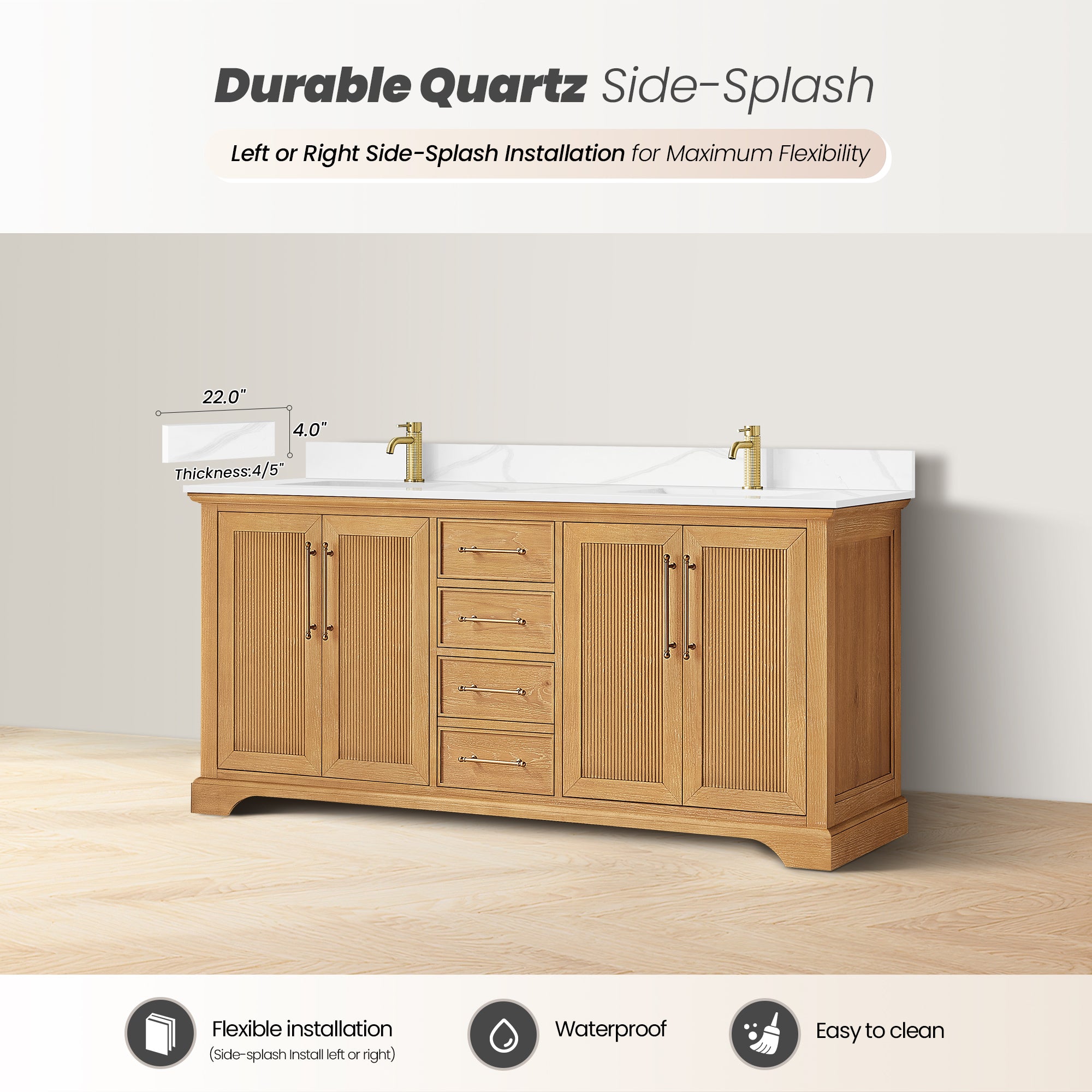 Tokyo 72"Double Bath Vanity in Oak Natural Brown with Silk White Quartz Stone Top