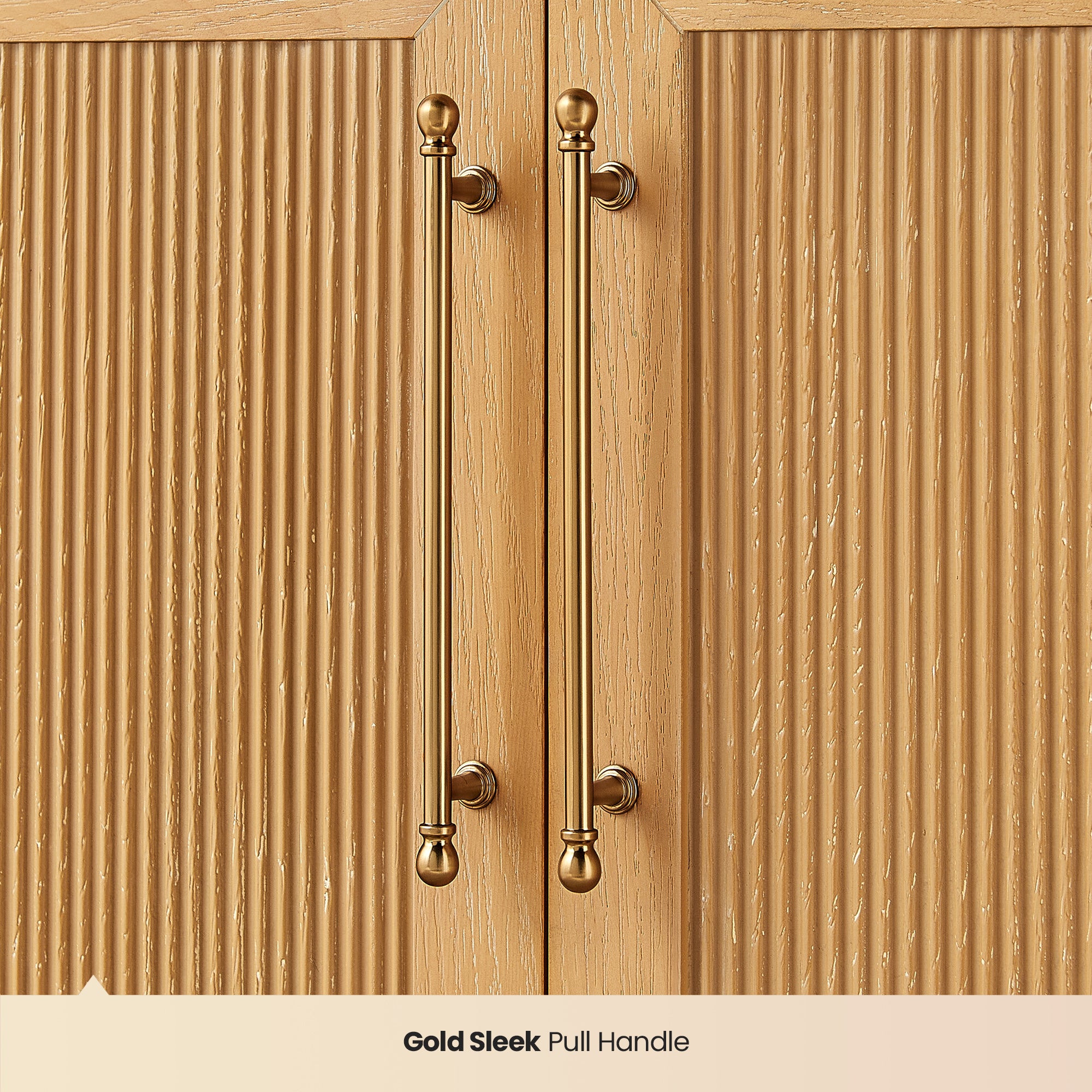 - High-Quality Hardware: Sturdy Gold handles offer a cool touch of style and contrast against the textured wood. (Handles come as shown - no customization options available)