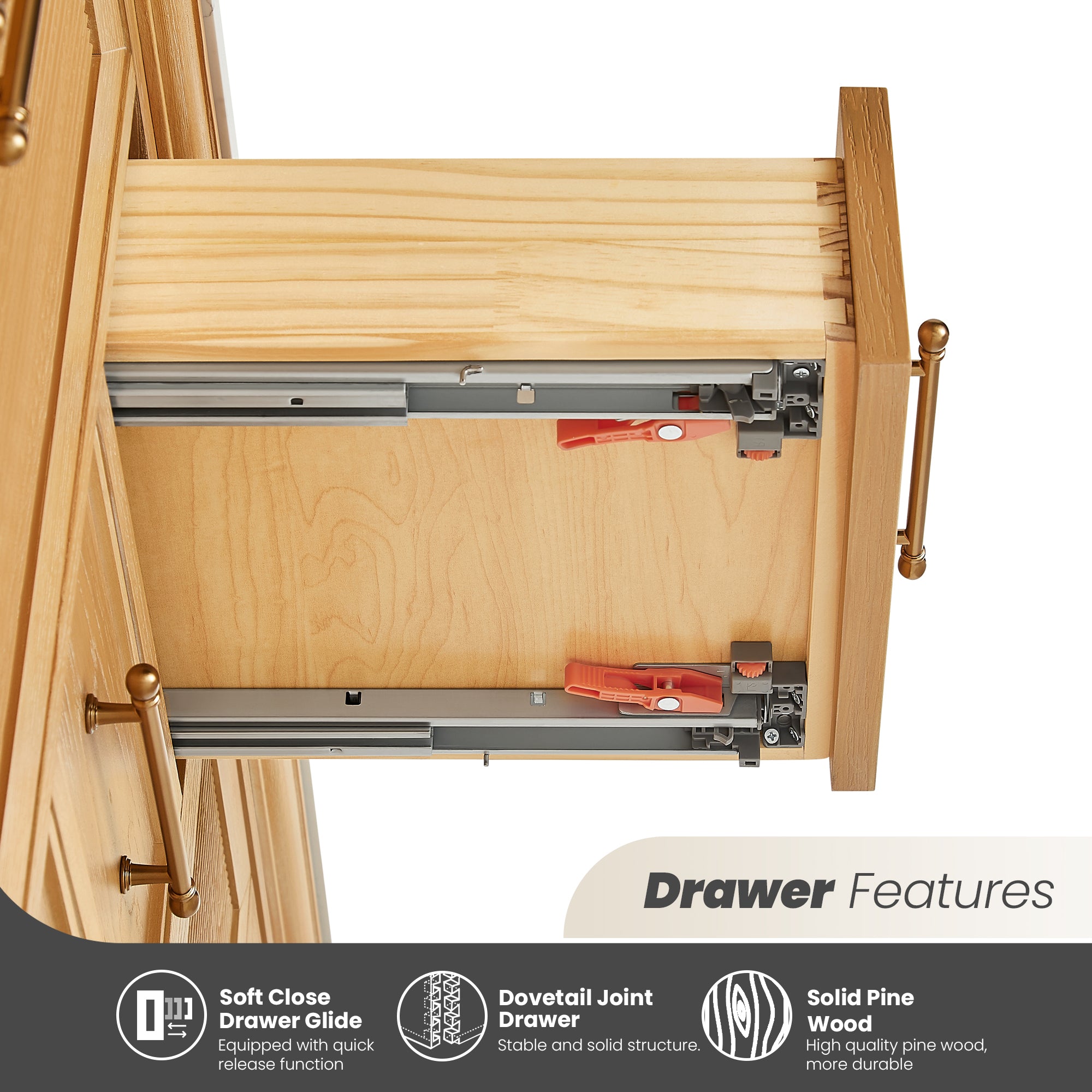 - Ample Storage Space: Four soft-closing doors with the fixed shelf and three sturdy, soft-closing dovetail drawers offer plenty of space for all your toiletries. Built-in partitions in the drawer allow you to keep items neatly organized.