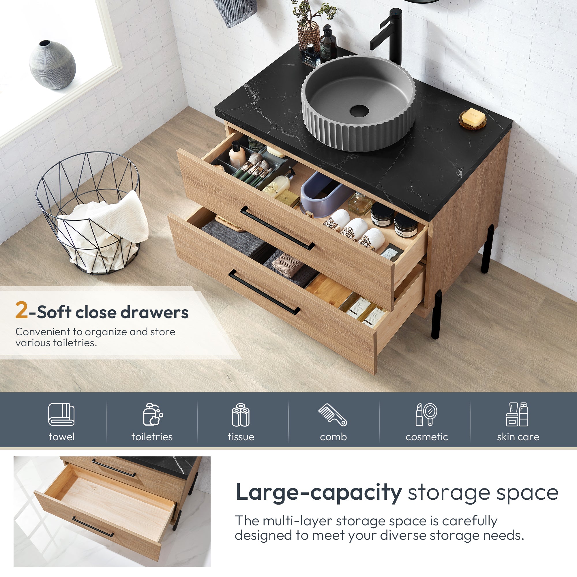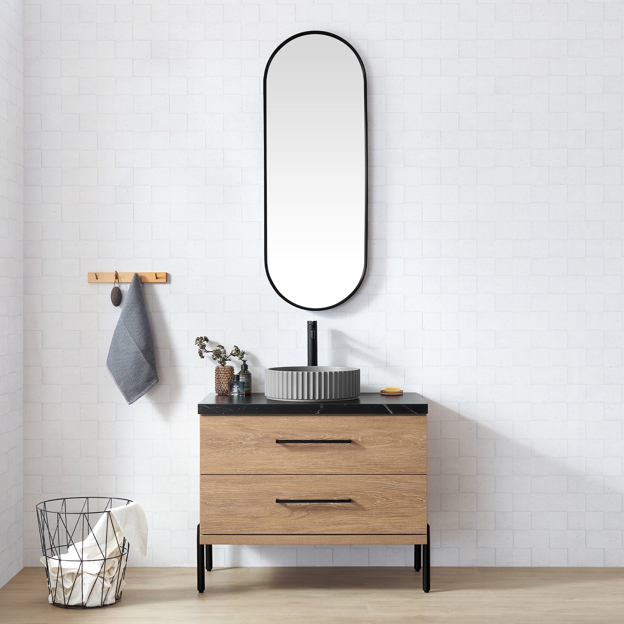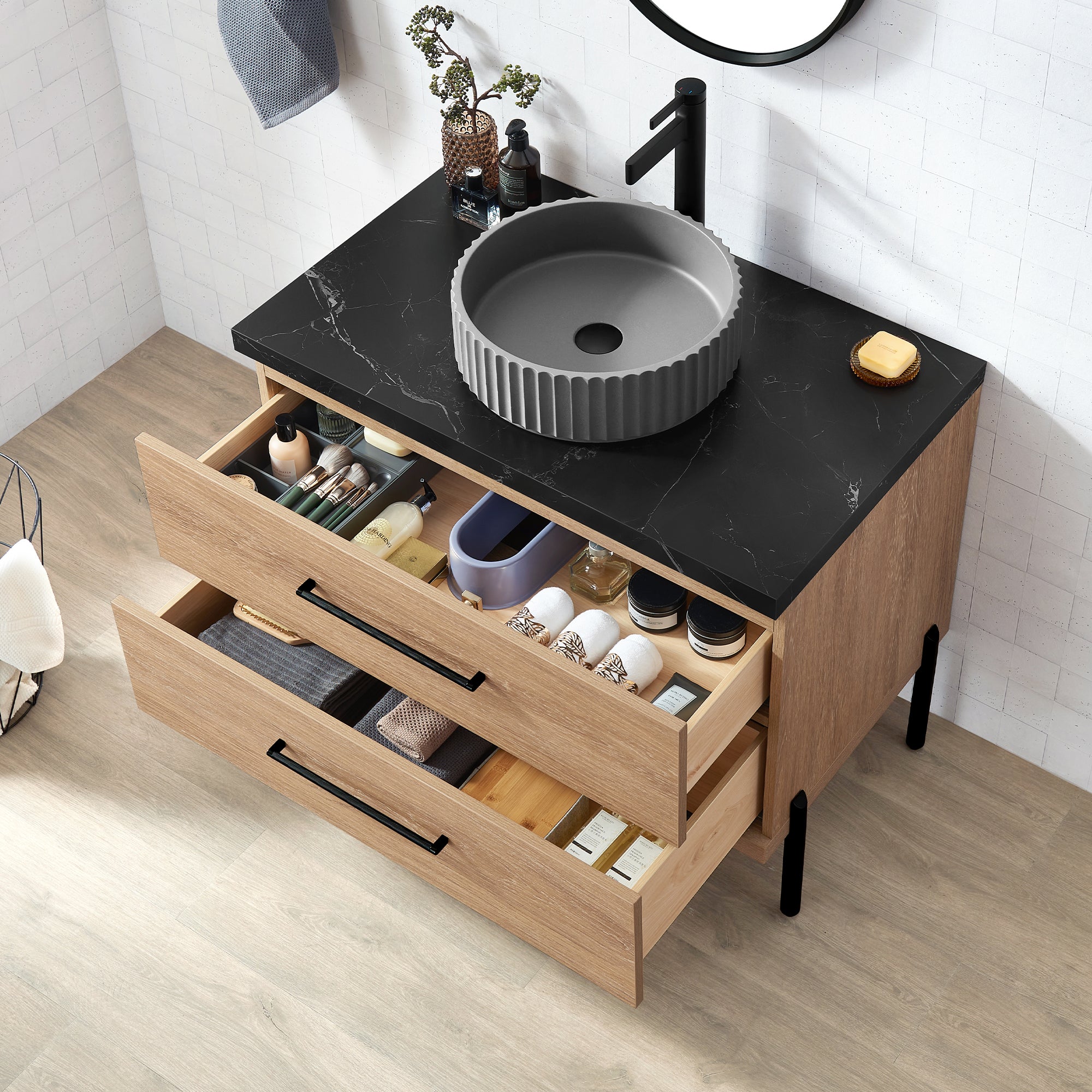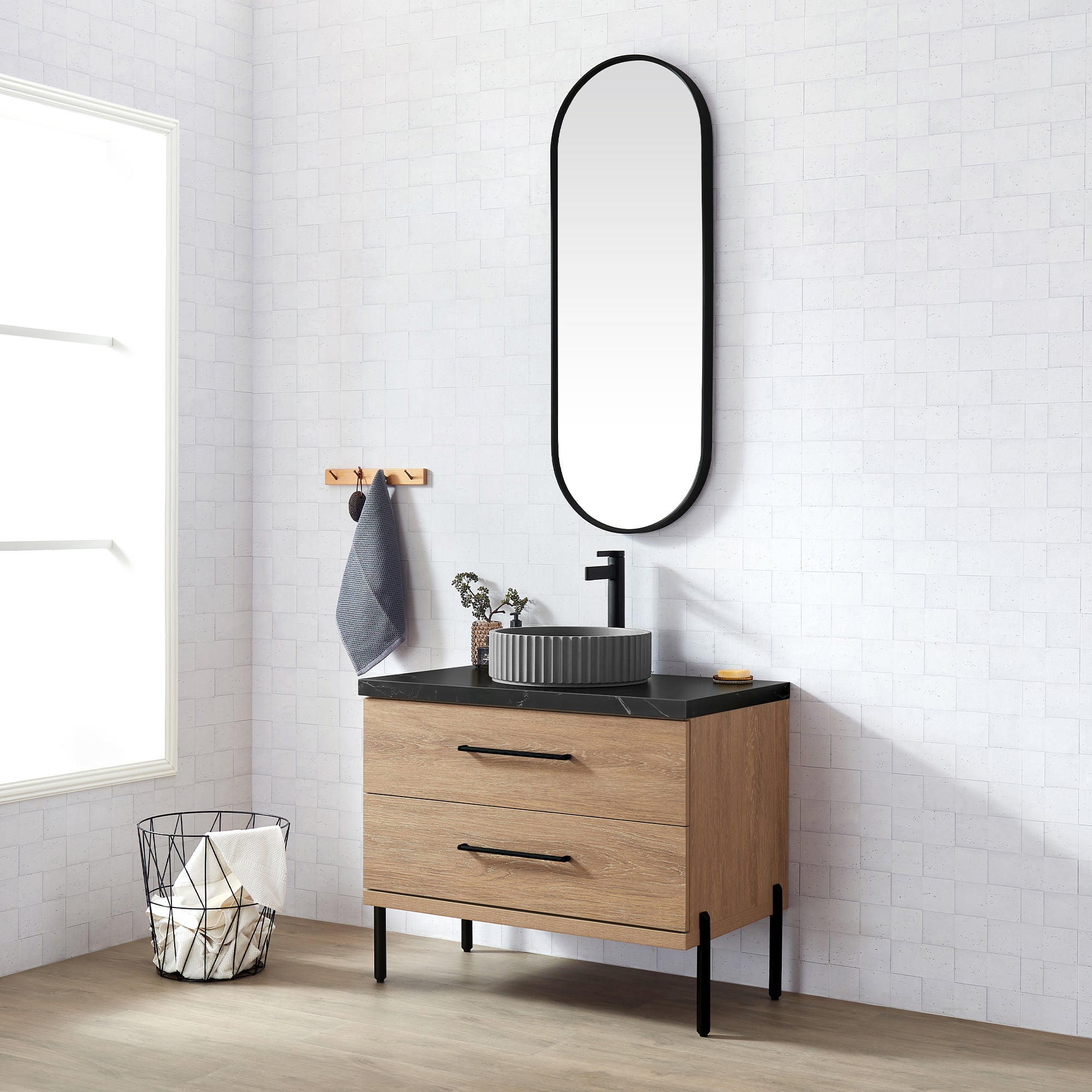 Trento 36B" Single Sink Bath Vanity in North American Oak with Black Sintered Stone Top and Circular Concrete Sink