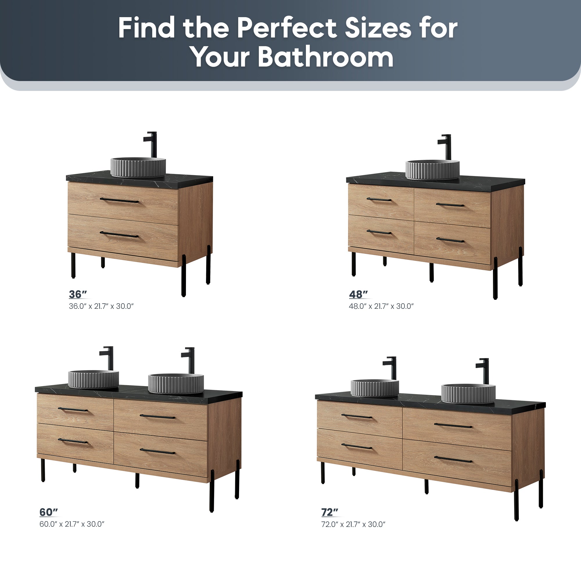 - Freestanding bathroom vanity (without back panel) comes partially assembled for your convenience; Matte Black support feet must be installed.