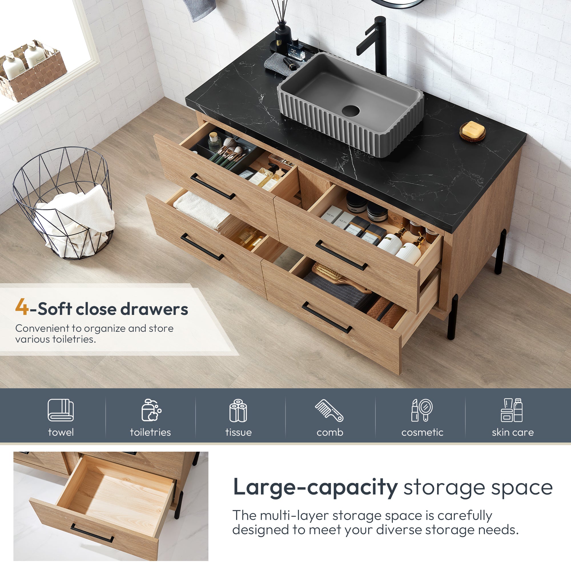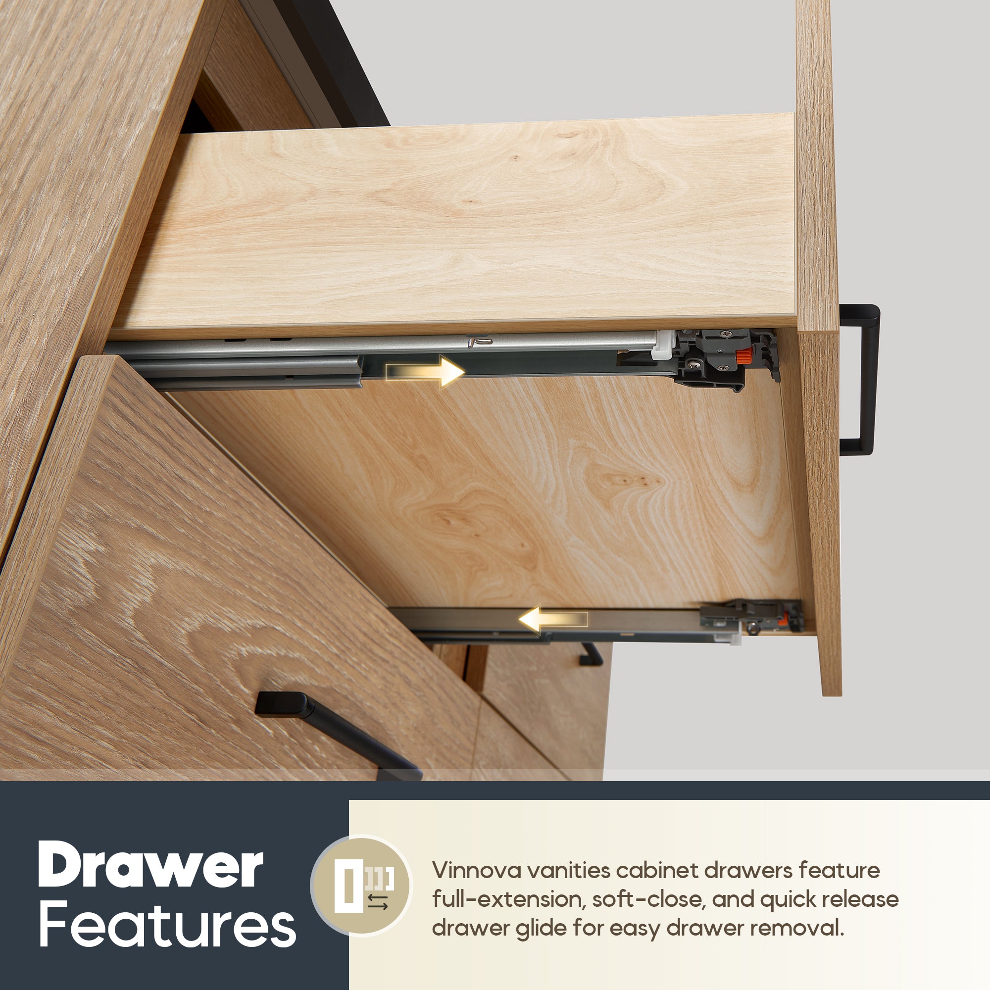 - 4 soft-closing drawers feature a full-extension glide to maximize your storage space.