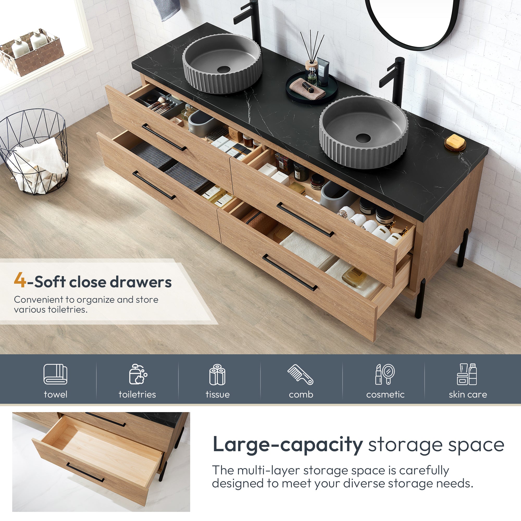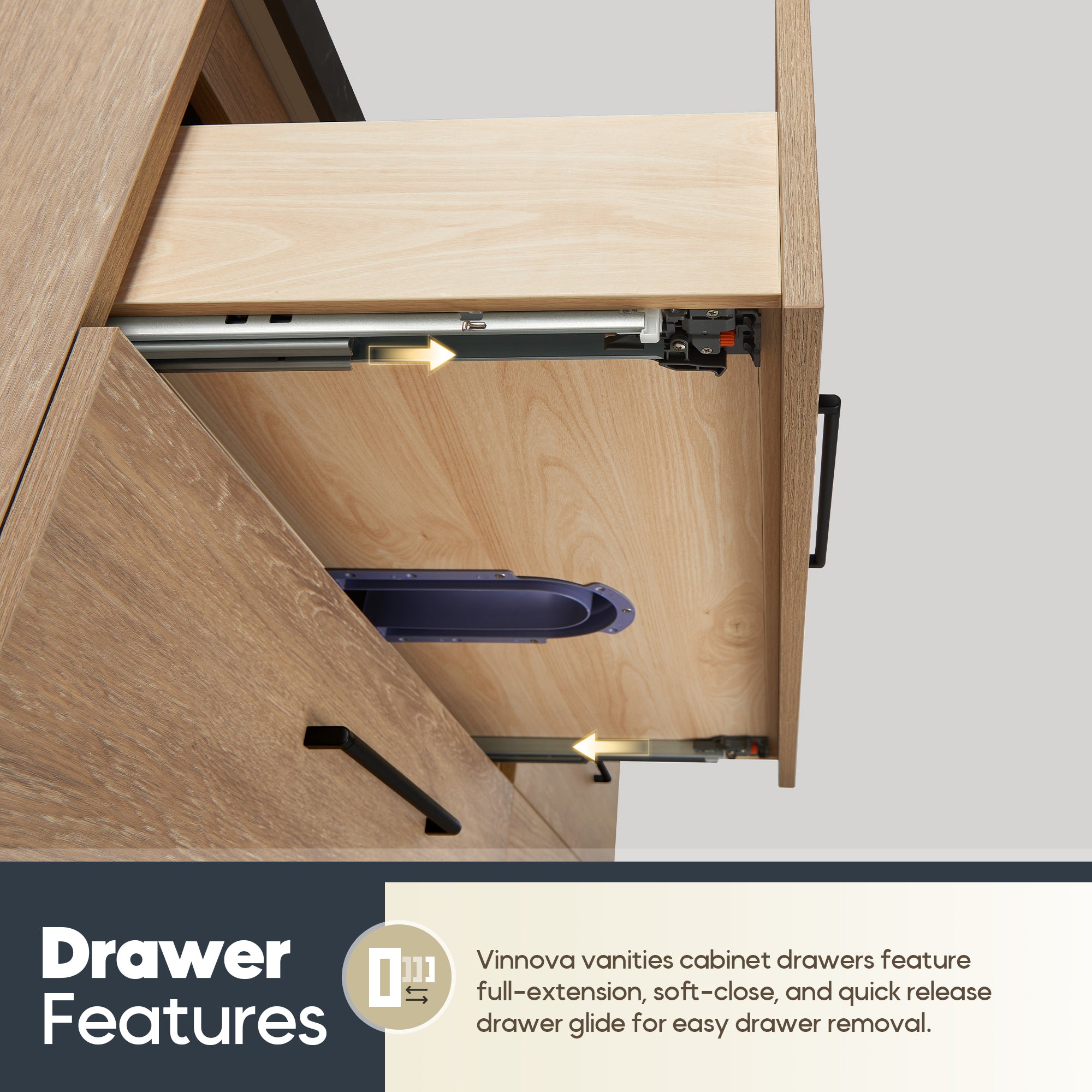 - 4 soft-closing drawers feature a full-extension glide to maximize your storage space.