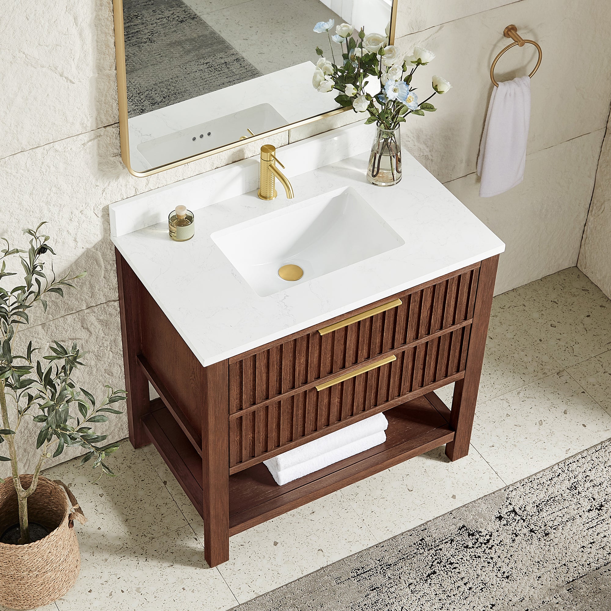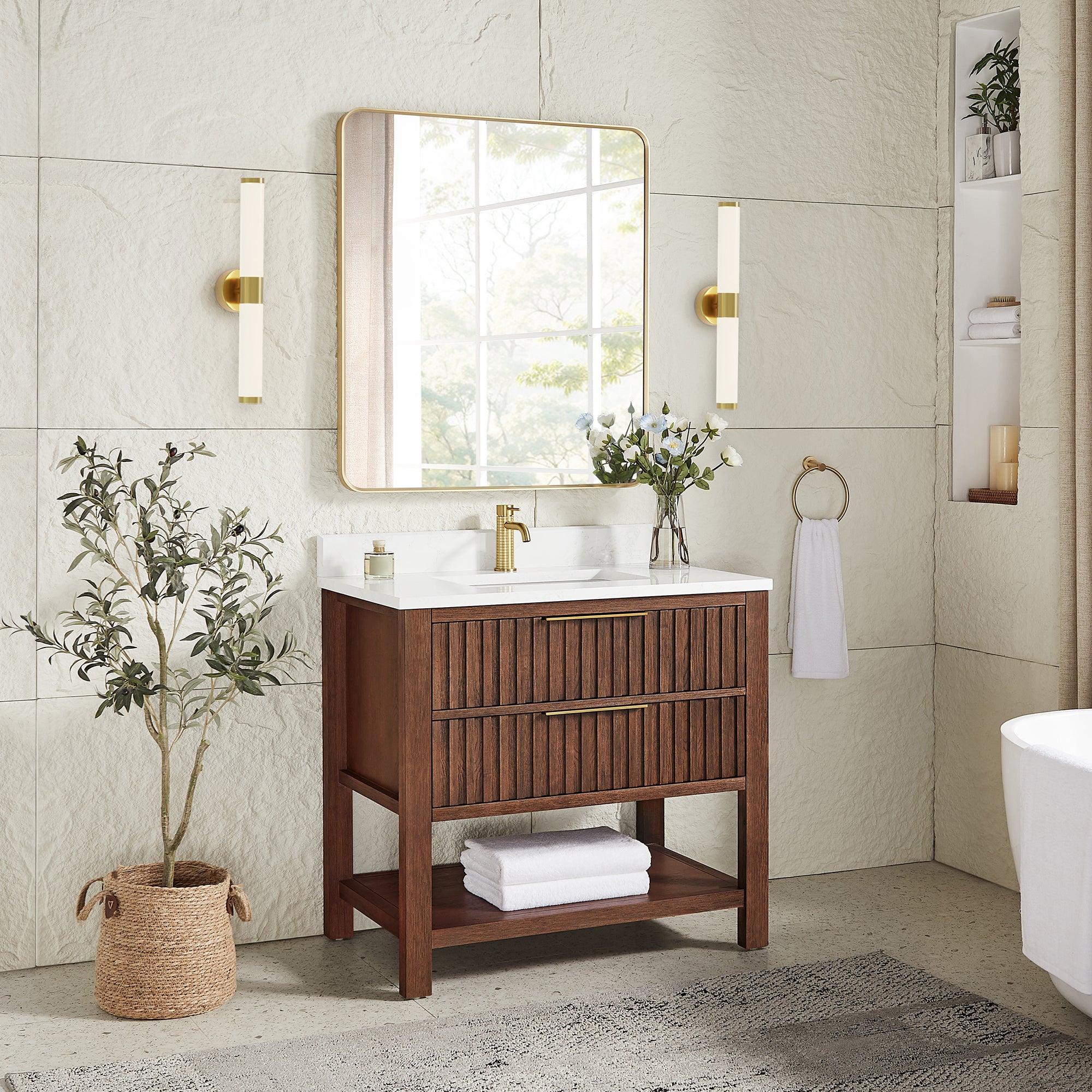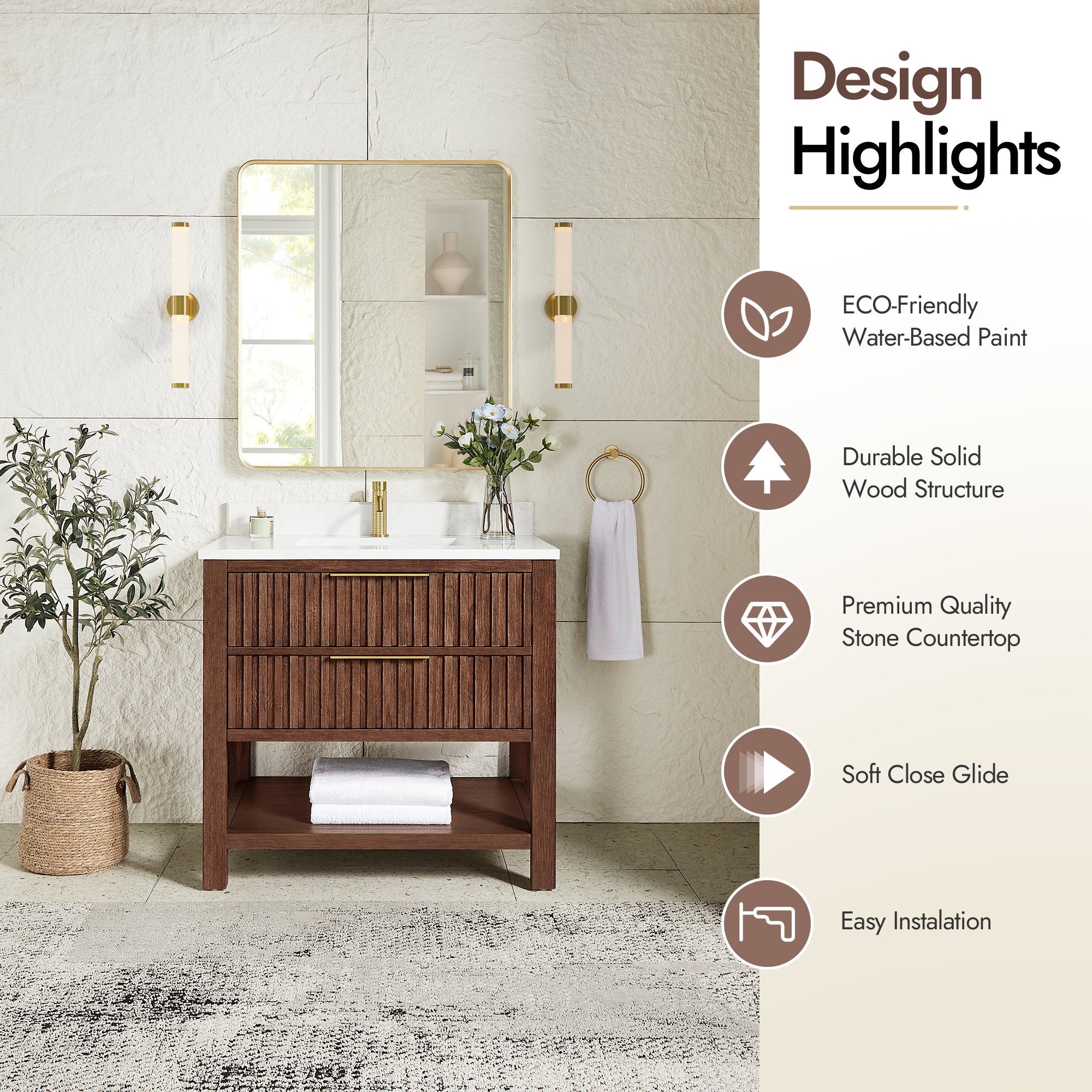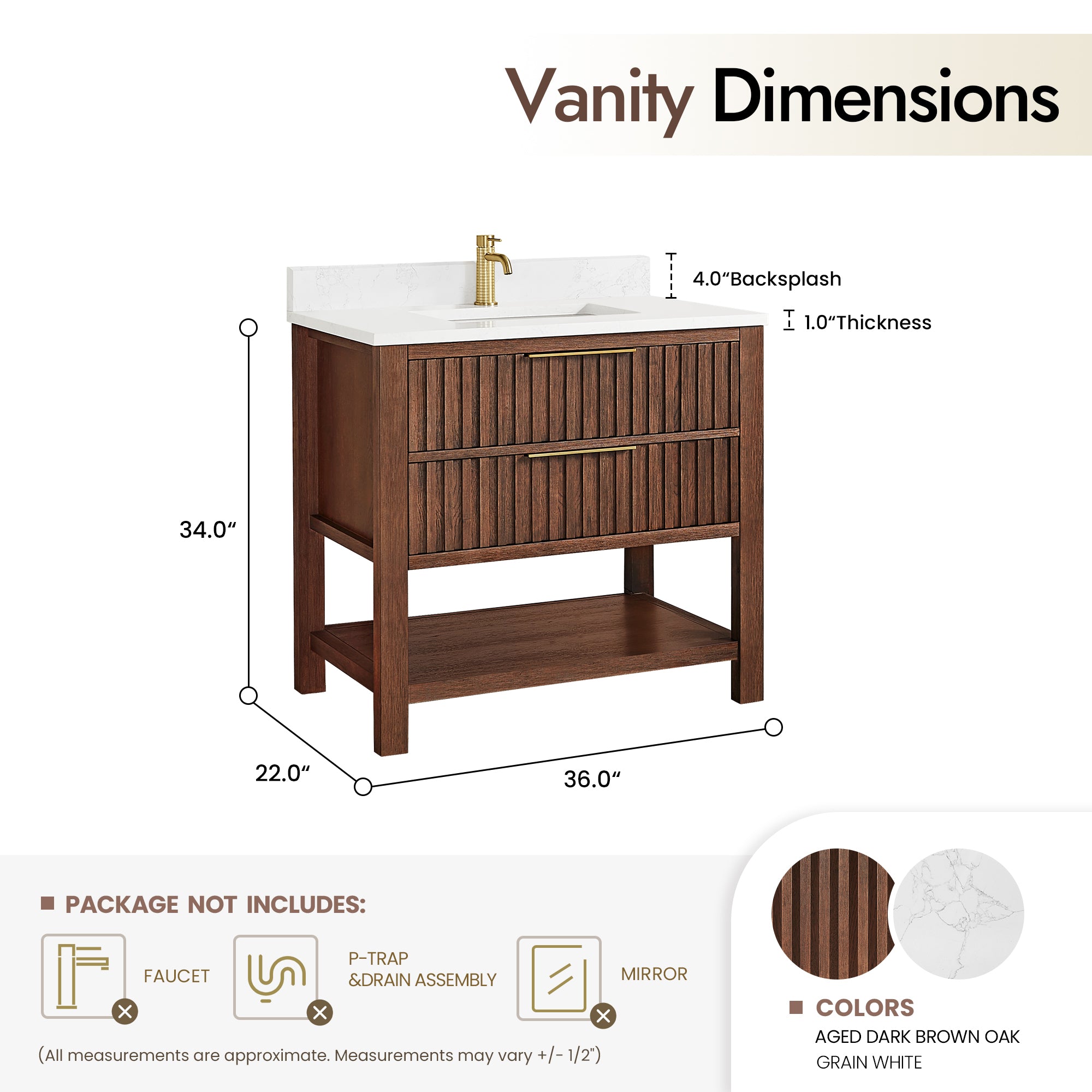 Vitre 36" Single Sink Bath Vanity in Aged Dark Brown Oak with White Grain Composite Stone Top