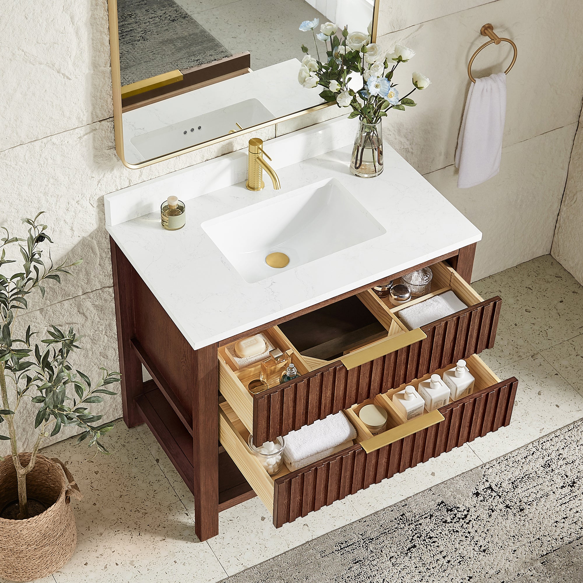 - No Installation Required: Freestanding bathroom vanity (without back panel) comes fully assembled for your convenience. Designed for easy, no-hassle plumbing and faucet installation.