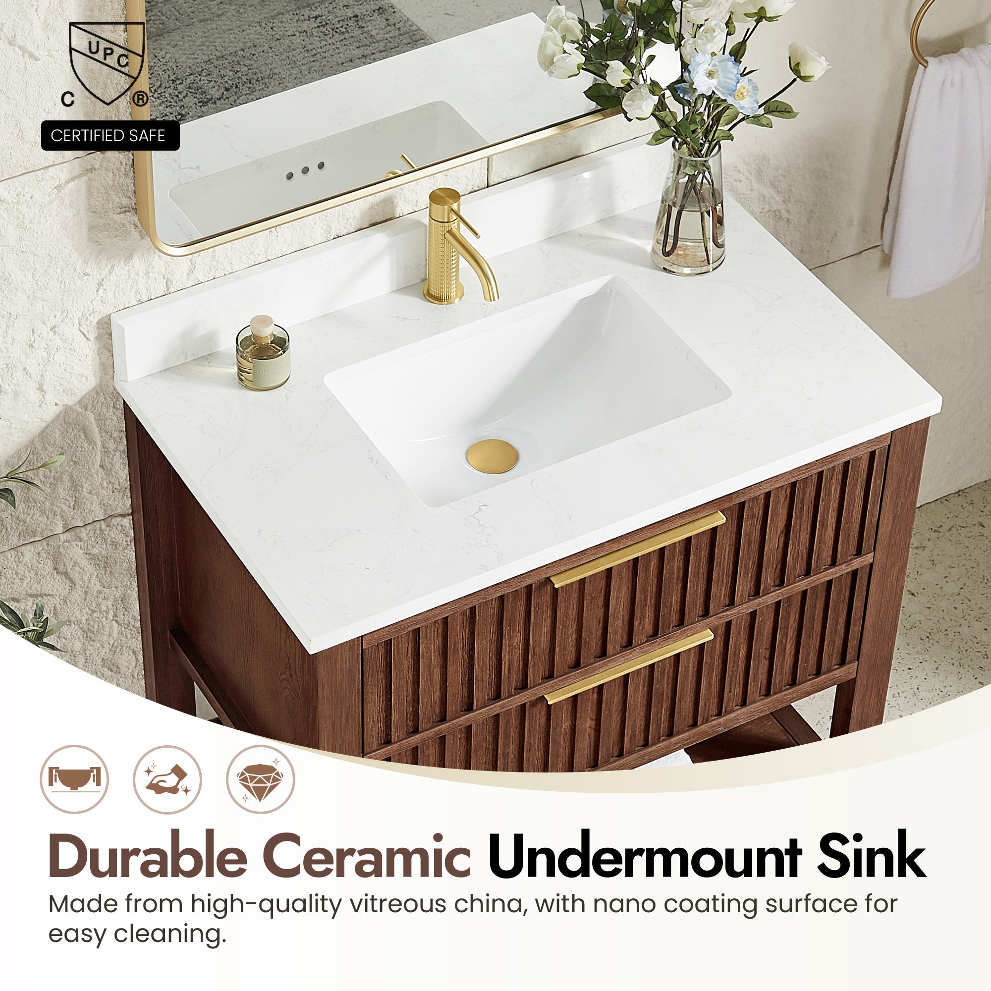 - Nano-Coated Basin: Bright white Nano anti-fouling coating ceramic undermount sink with overflow blends seamlessly with the stone vanity top.