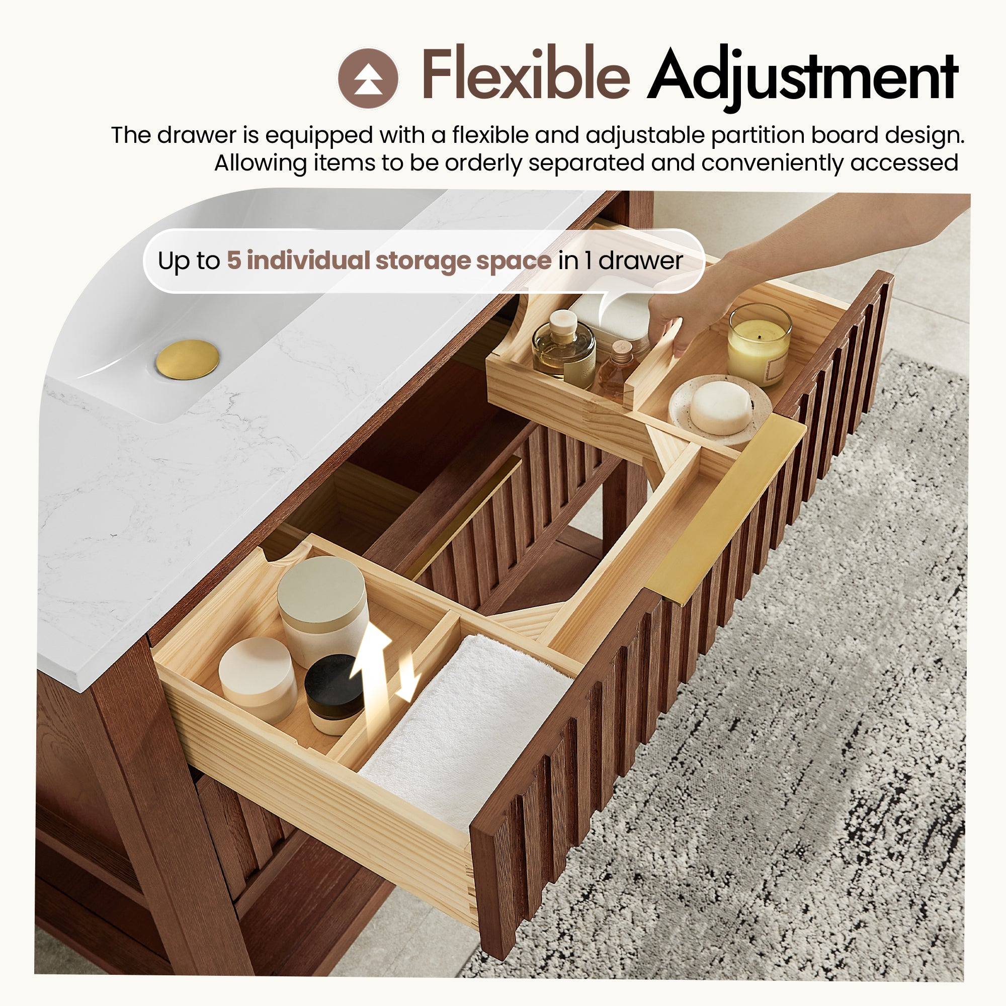 - Ample Storage Space: Two sturdy, hand-spliced, soft-closing dovetail drawers offer ample space for all your toiletries. Fixed bottom shelves and built-in partition storage space in the drawers allow you to keep toiletries and other items neatly organized.