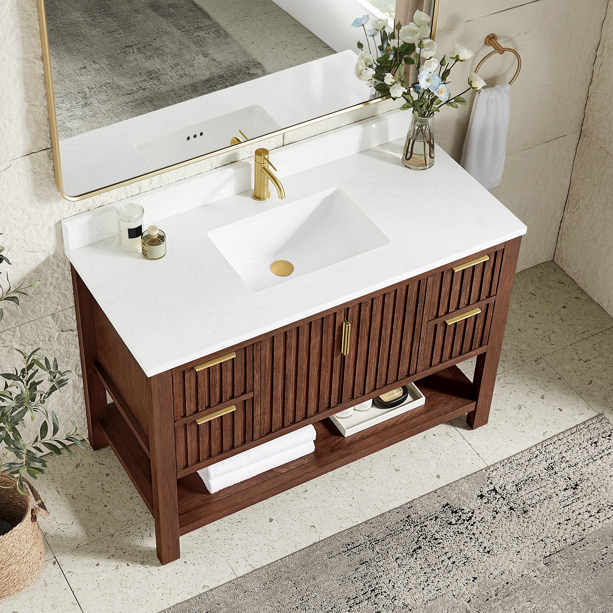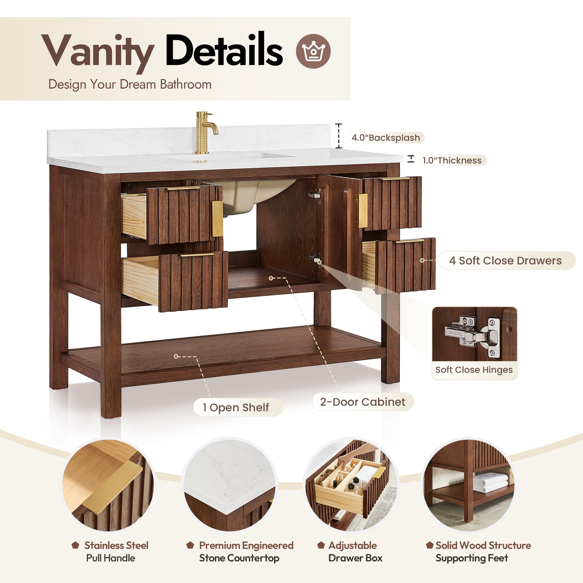 - No Installation Required: Freestanding bathroom vanity (without back panel) comes fully assembled for your convenience. Designed for easy, no-hassle plumbing and faucet installation.