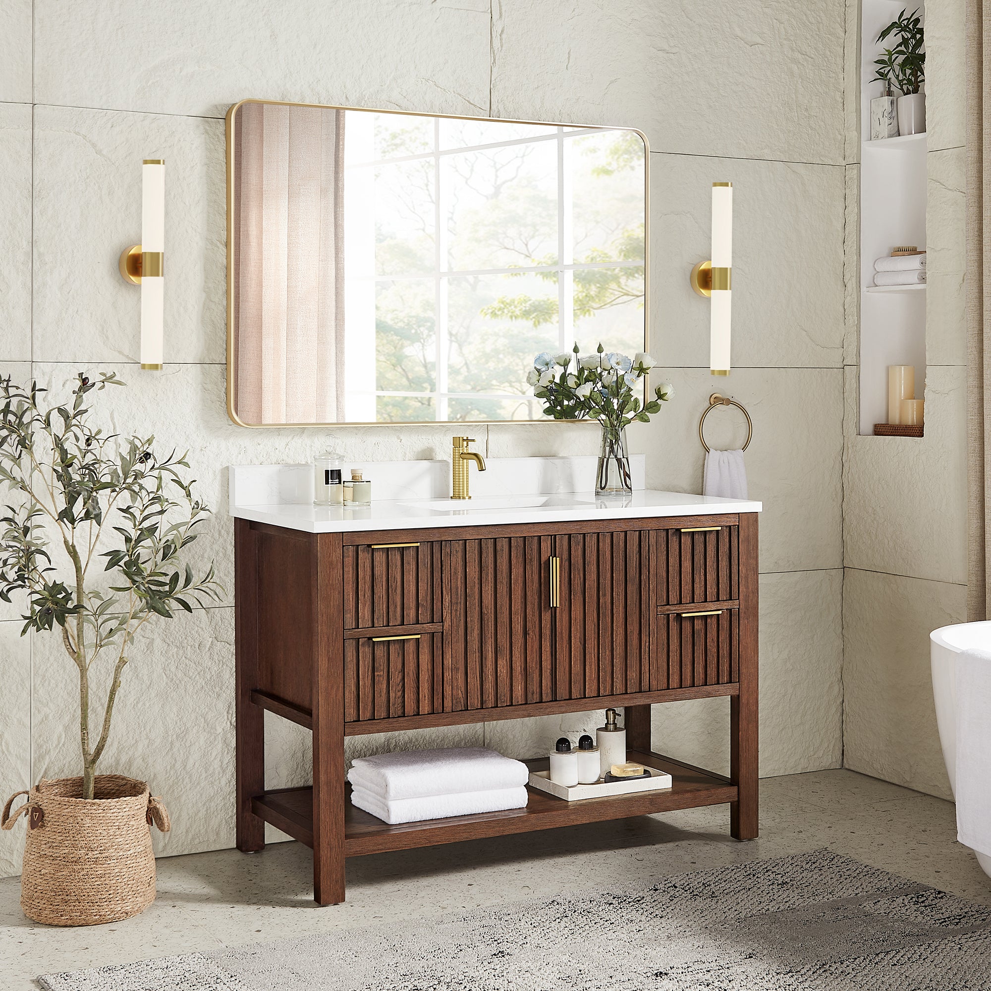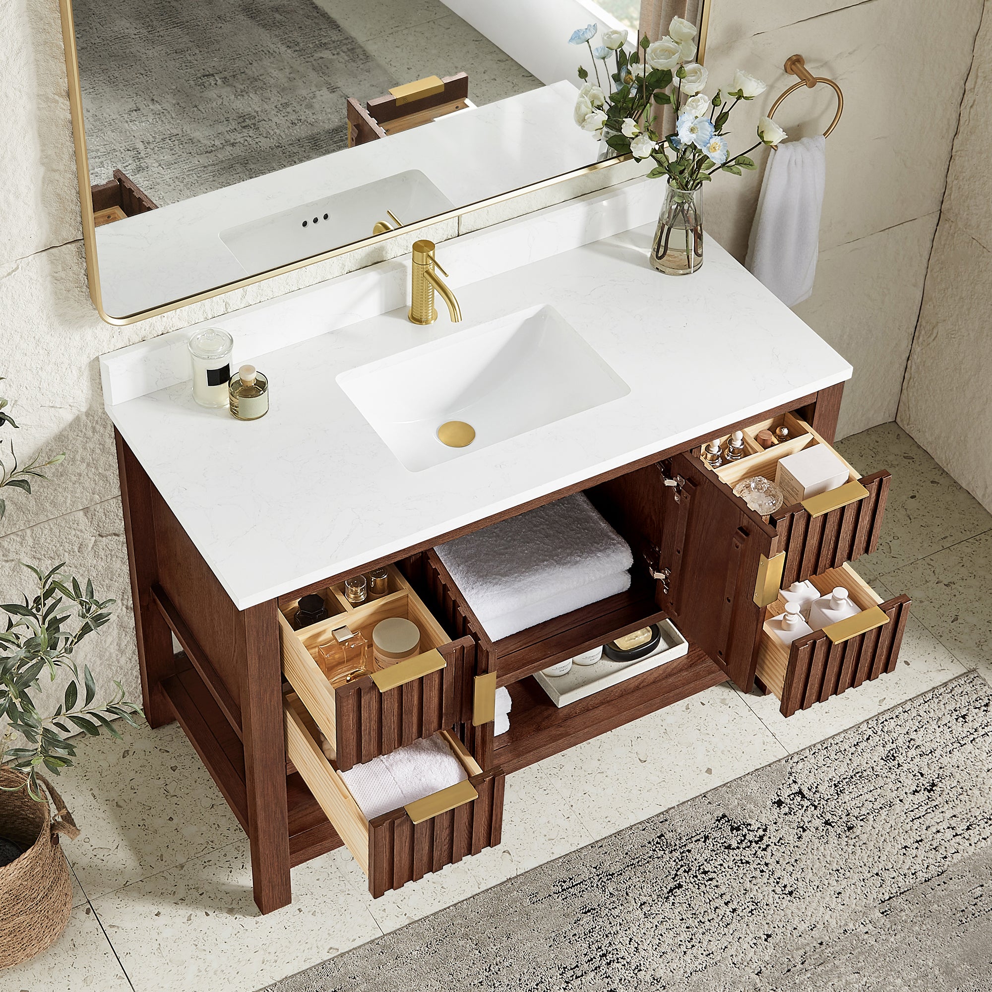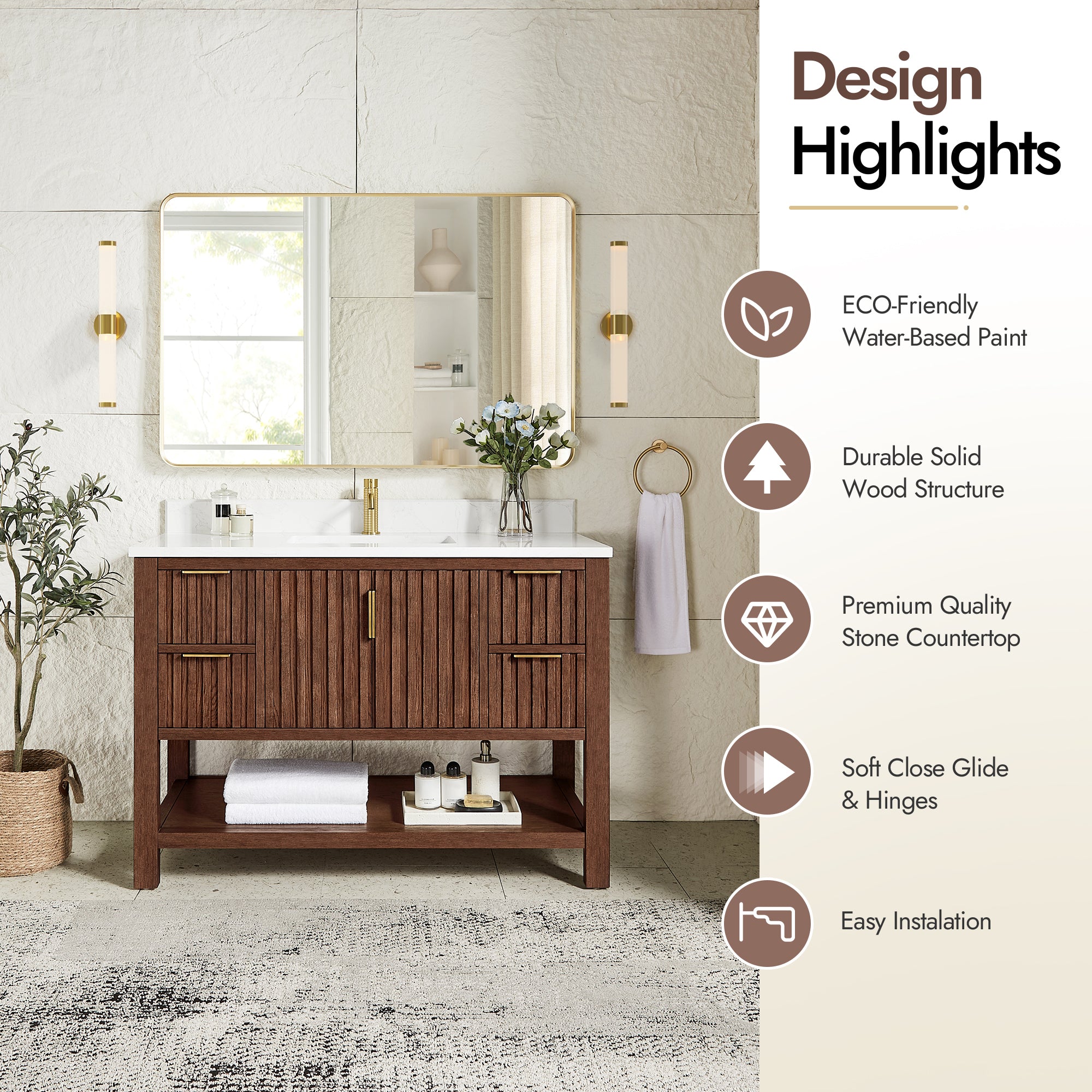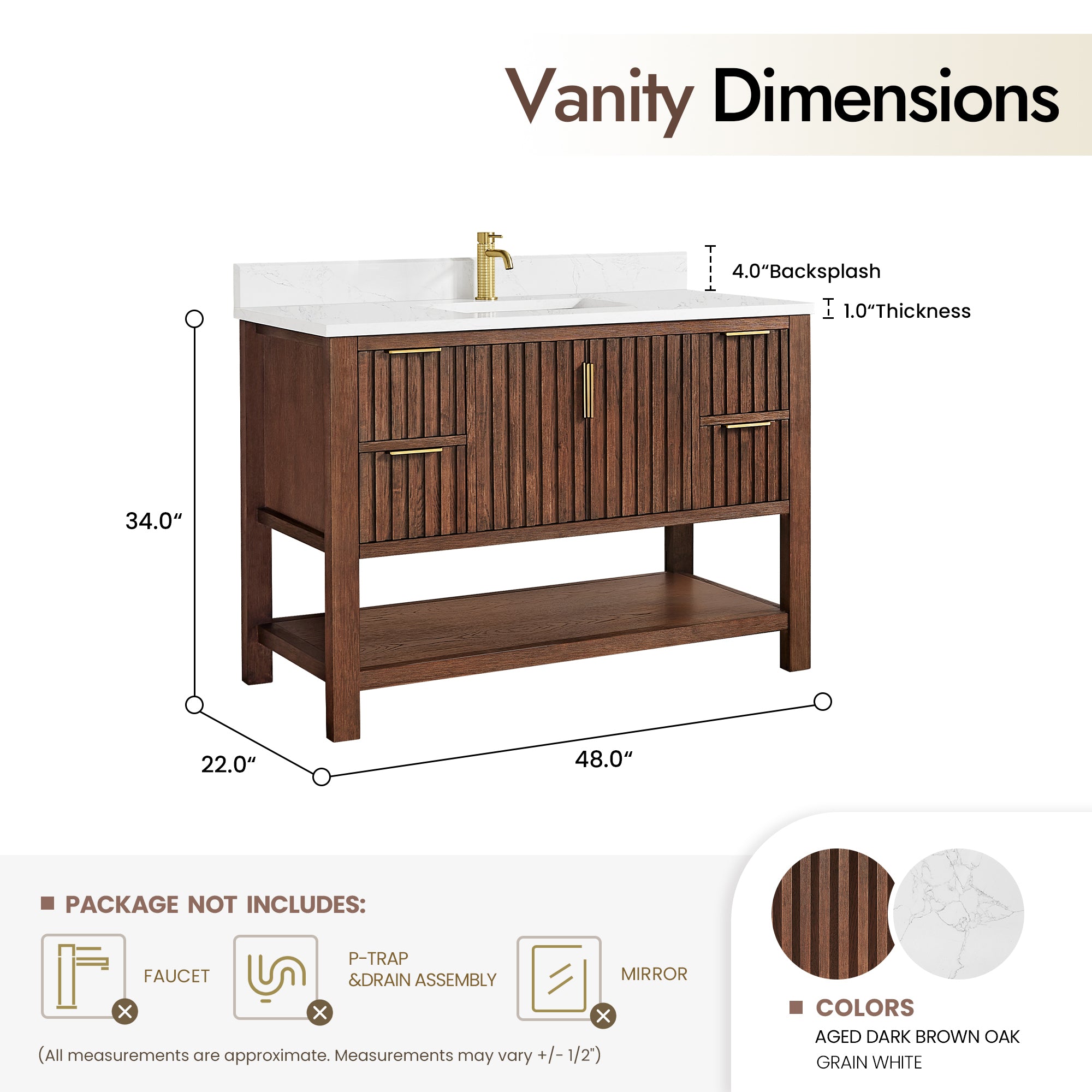 Vitre 48" Single Sink Bath Vanity in Aged Dark Brown Oak with White Grain Composite Stone Top