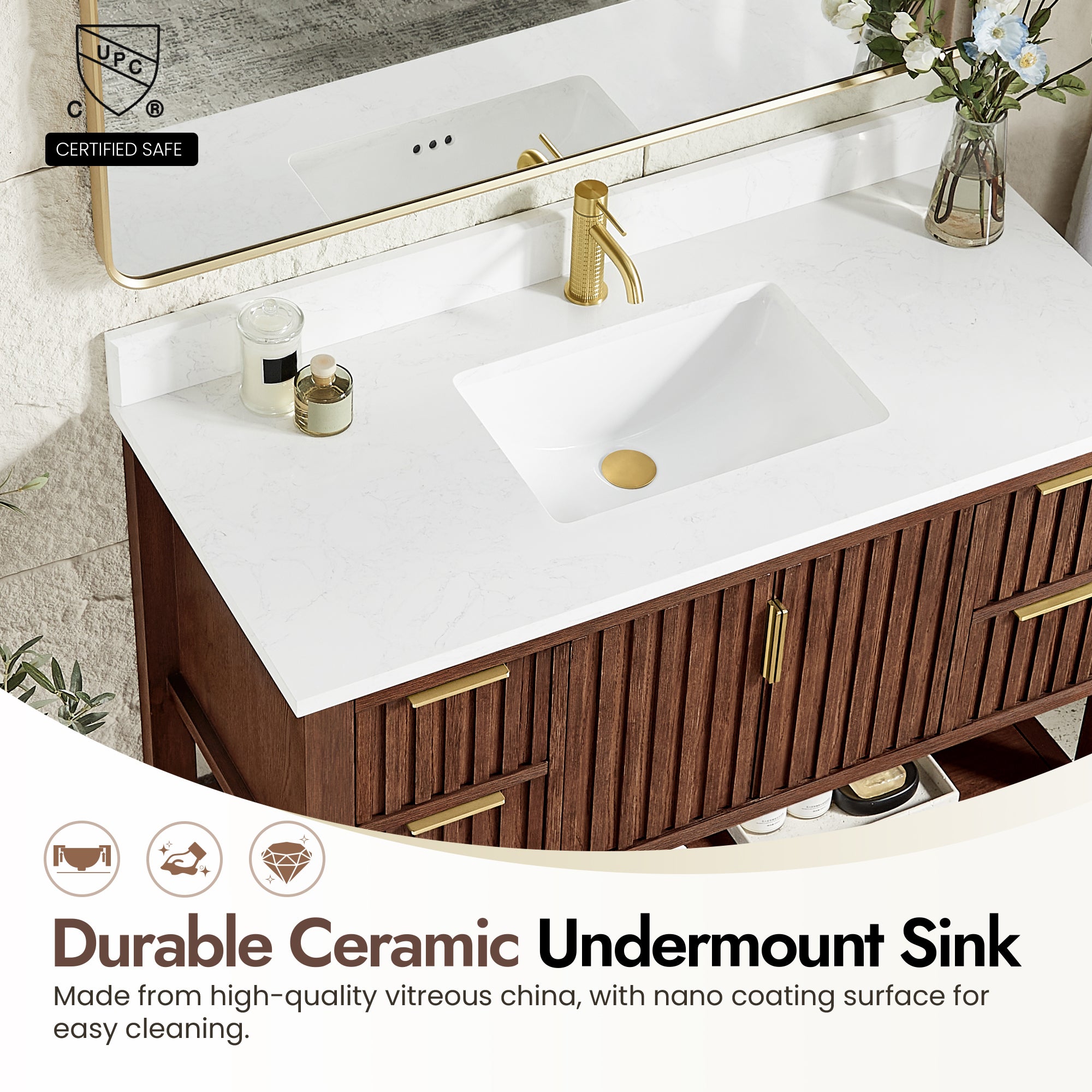 - Nano-Coated Basin: Bright white Nano anti-fouling coating ceramic undermount sink with overflow blends seamlessly with the stone vanity top.