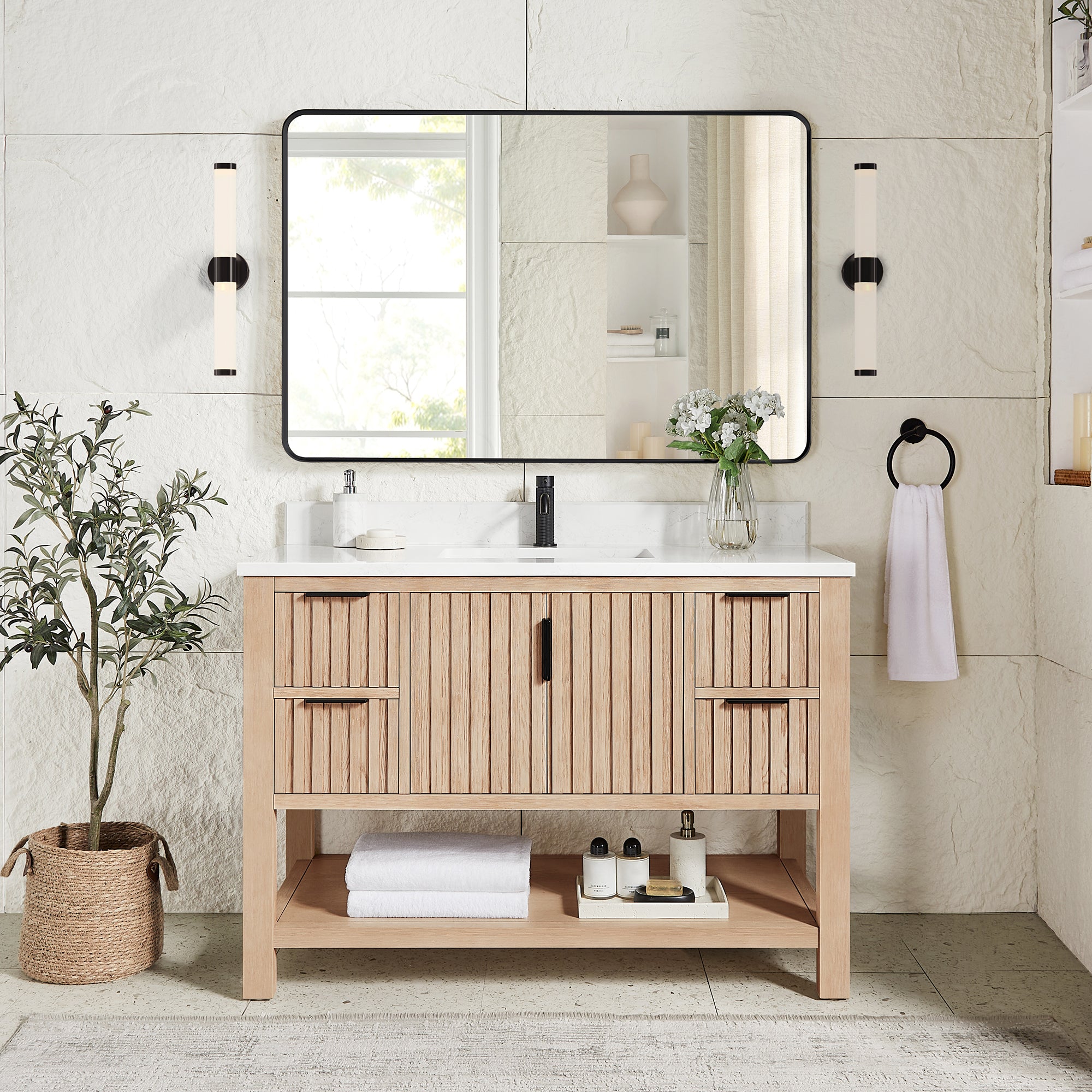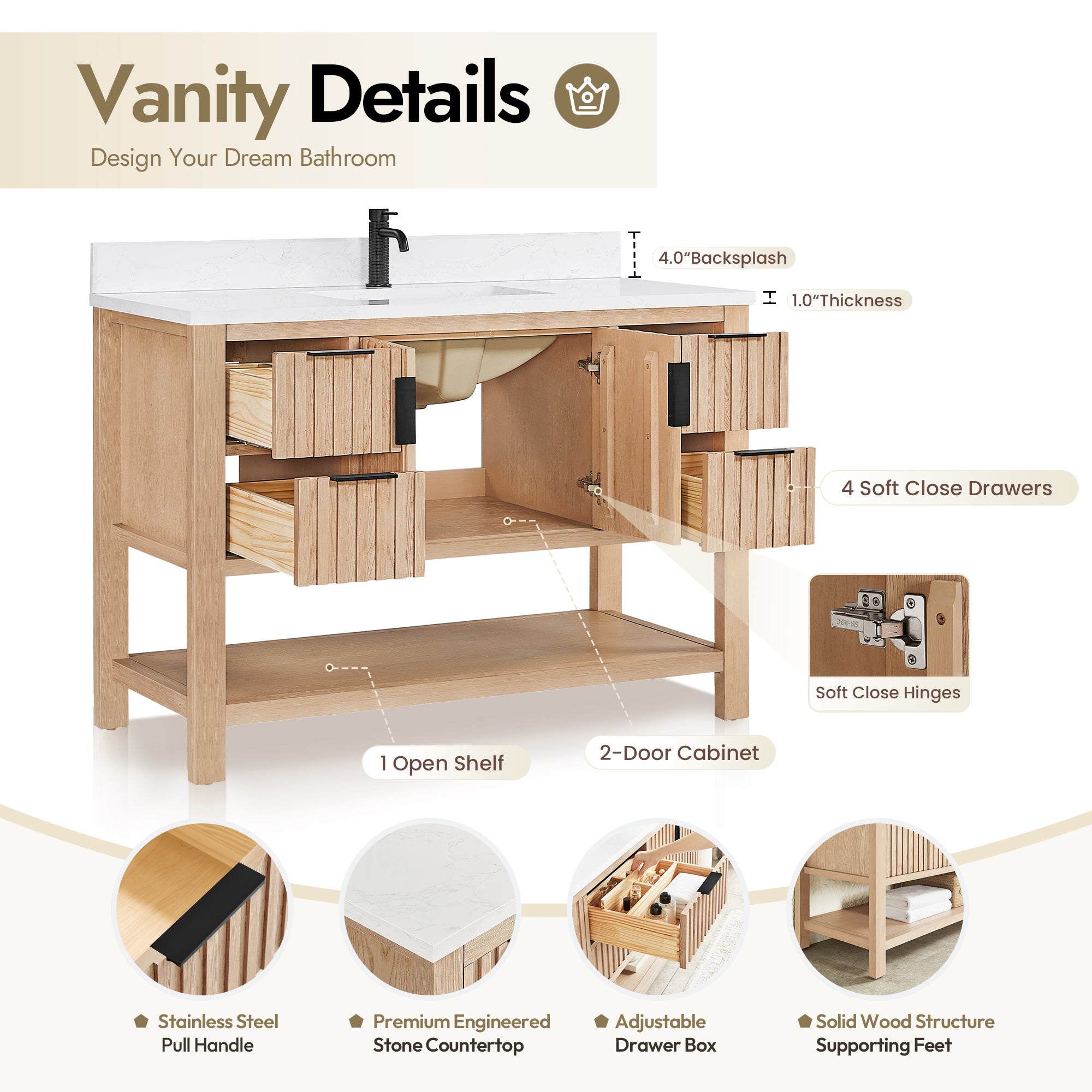 - No Installation Required: Freestanding bathroom vanity (without back panel) comes fully assembled for your convenience. Designed for easy, no-hassle plumbing and faucet installation.