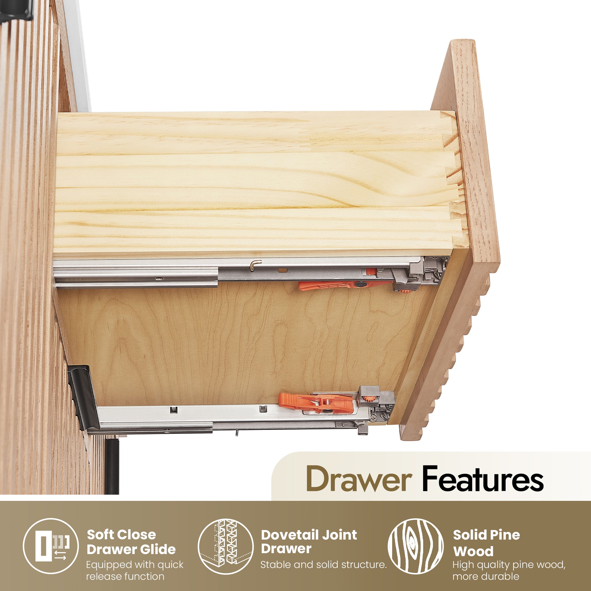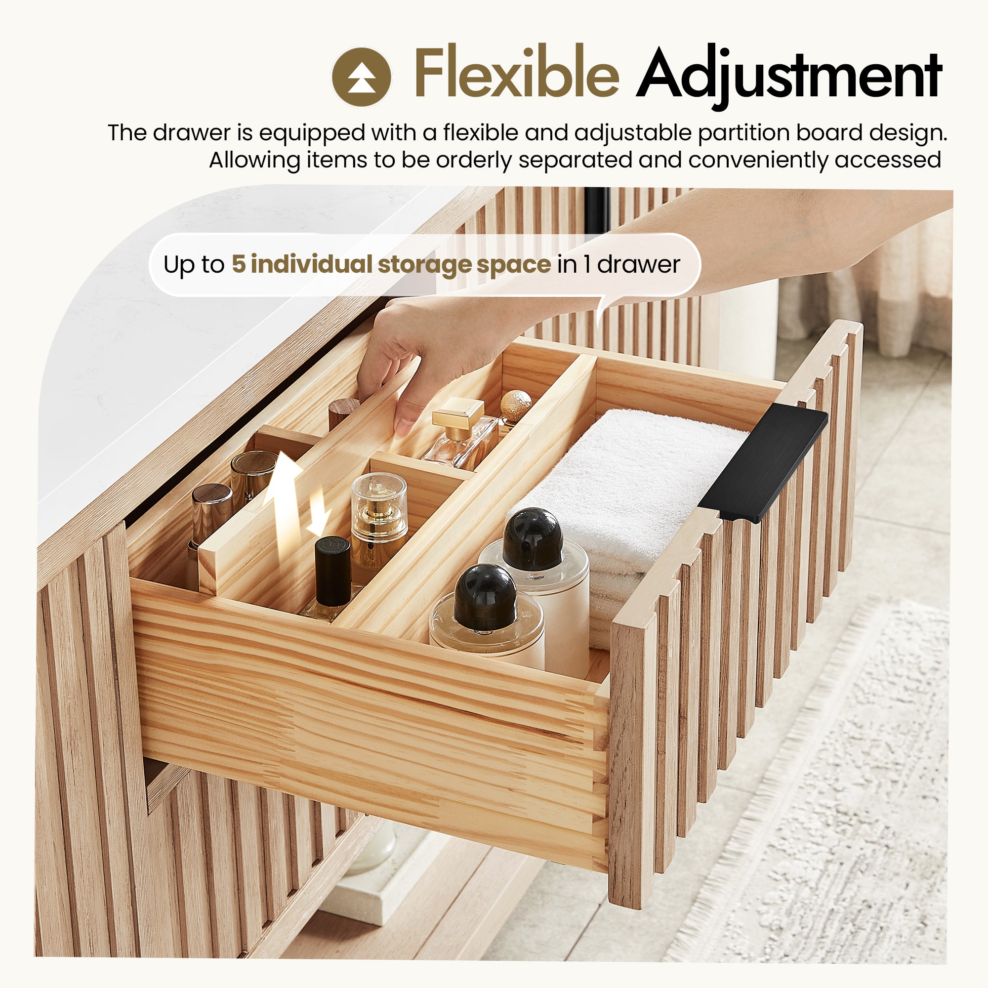 - Ample Storage Space: Two soft-closing, hand-spliced doors (door panel with anti-warping reinforcement strip) and four sturdy, hand-spliced, soft-closing dovetail drawers offer ample space for all your toiletries. Fixed bottom shelves and built-in partition storage space in the drawers allow you to keep toiletries and other items neatly organized.