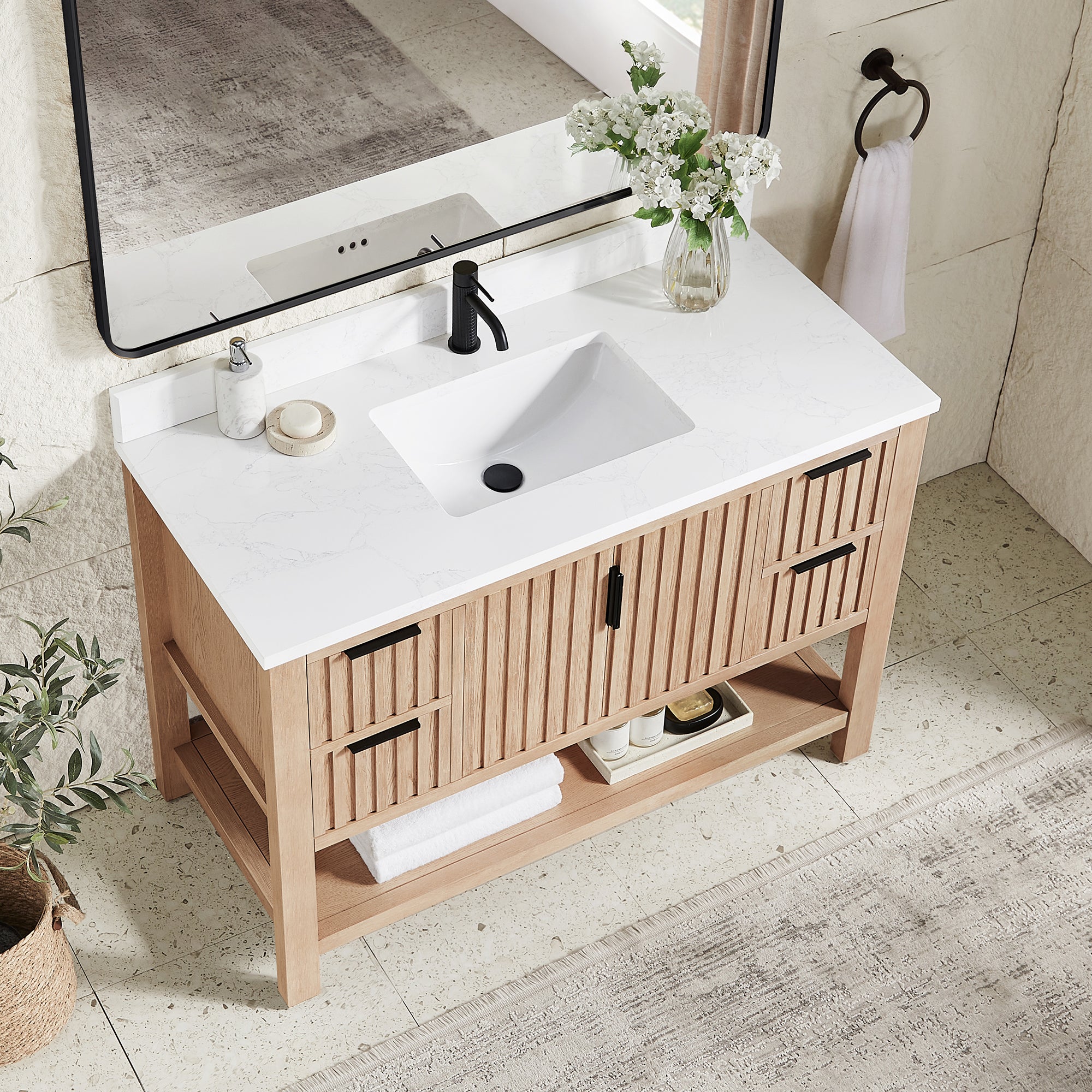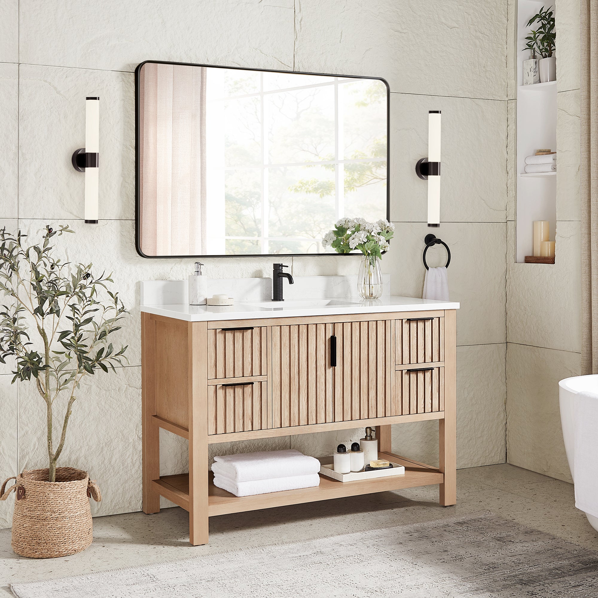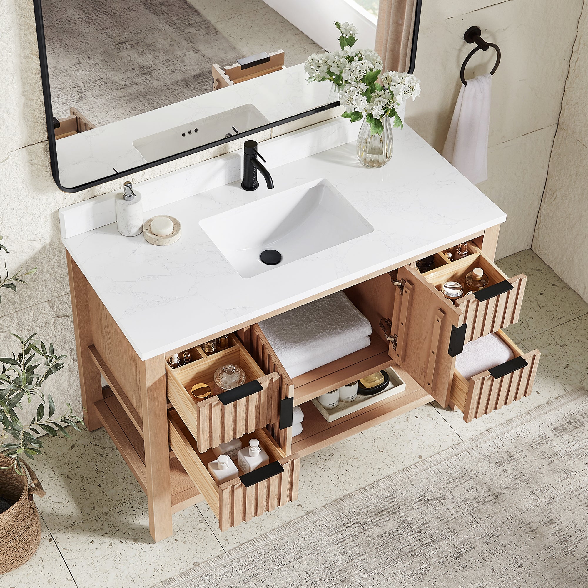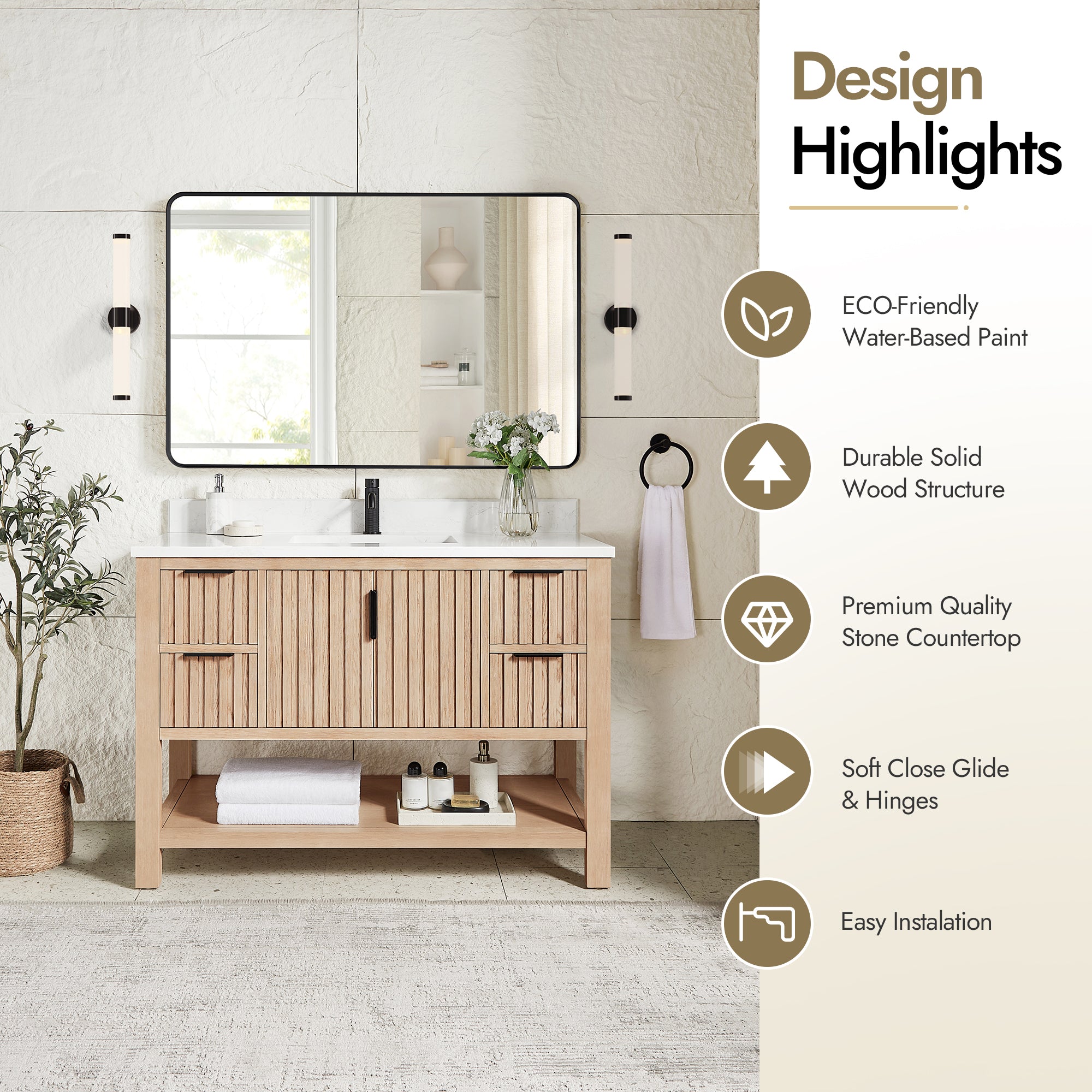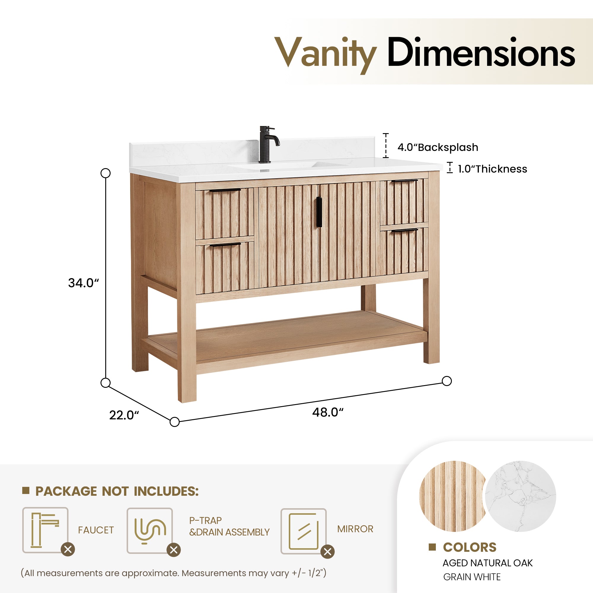 Vitre 48" Single Sink Bath Vanity in Aged Natural Oak with White Grain Composite Stone Top