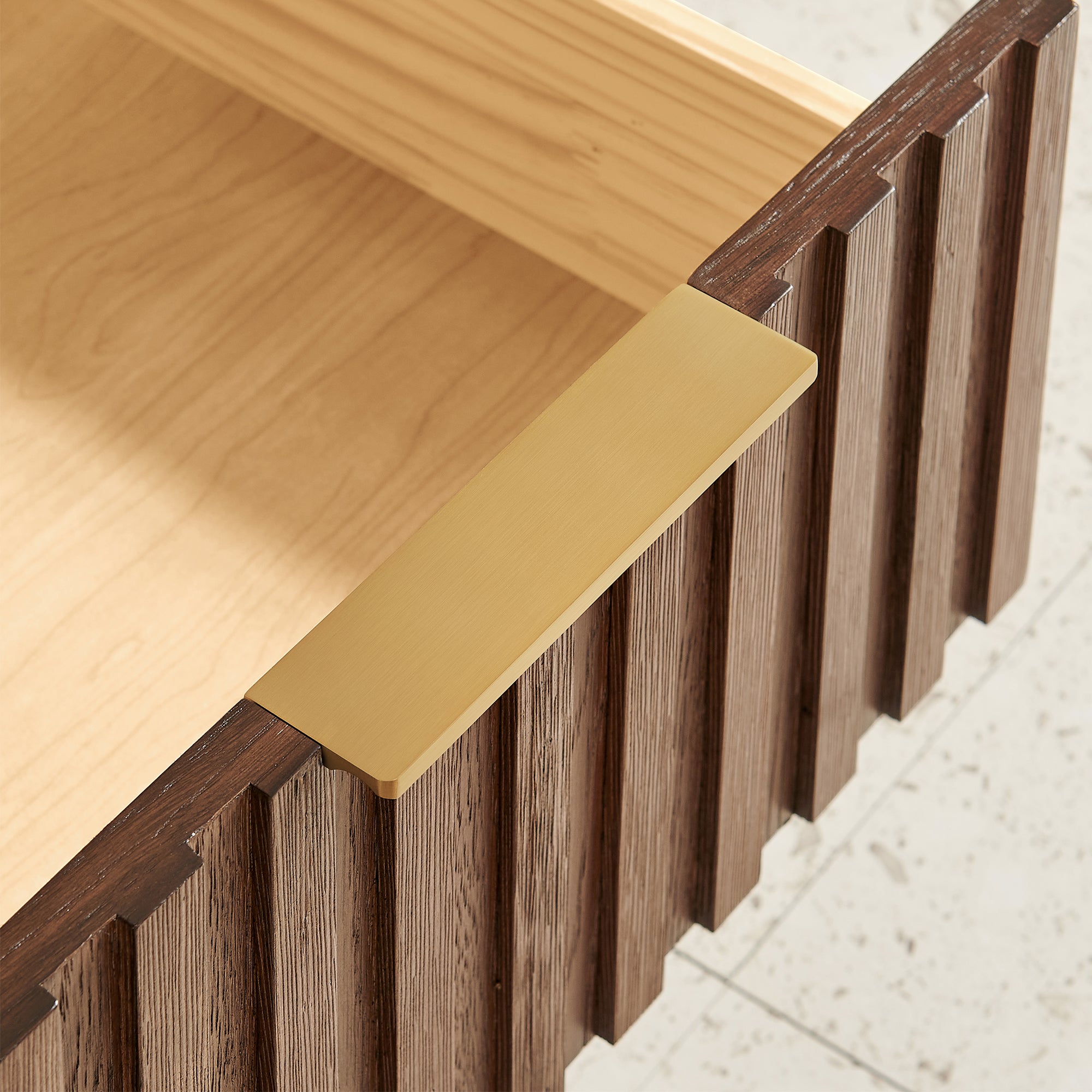 - High-Quality Hardware: Sophisticated Brushed Gold or Matte Black handles add a cool touch of style and contrast against the textured wood. (Handles come as shown - no customization options available)