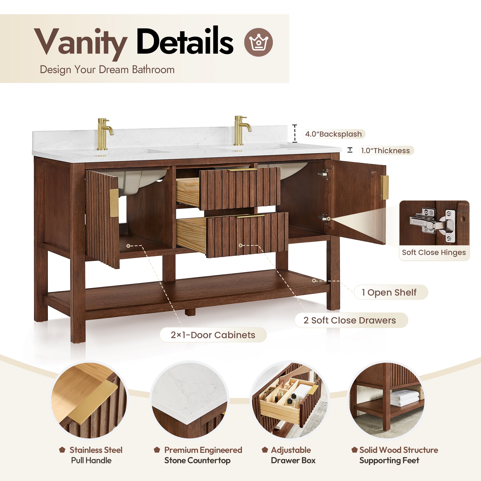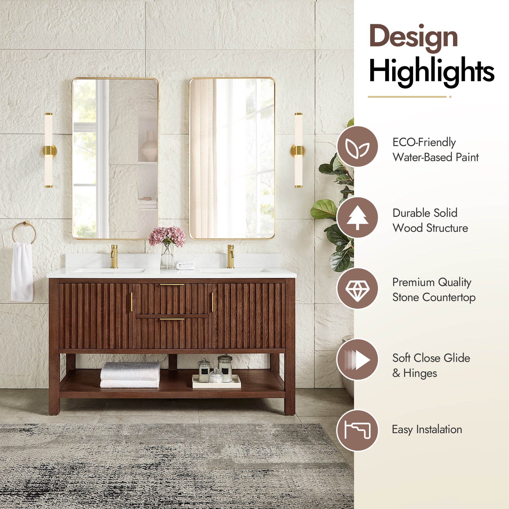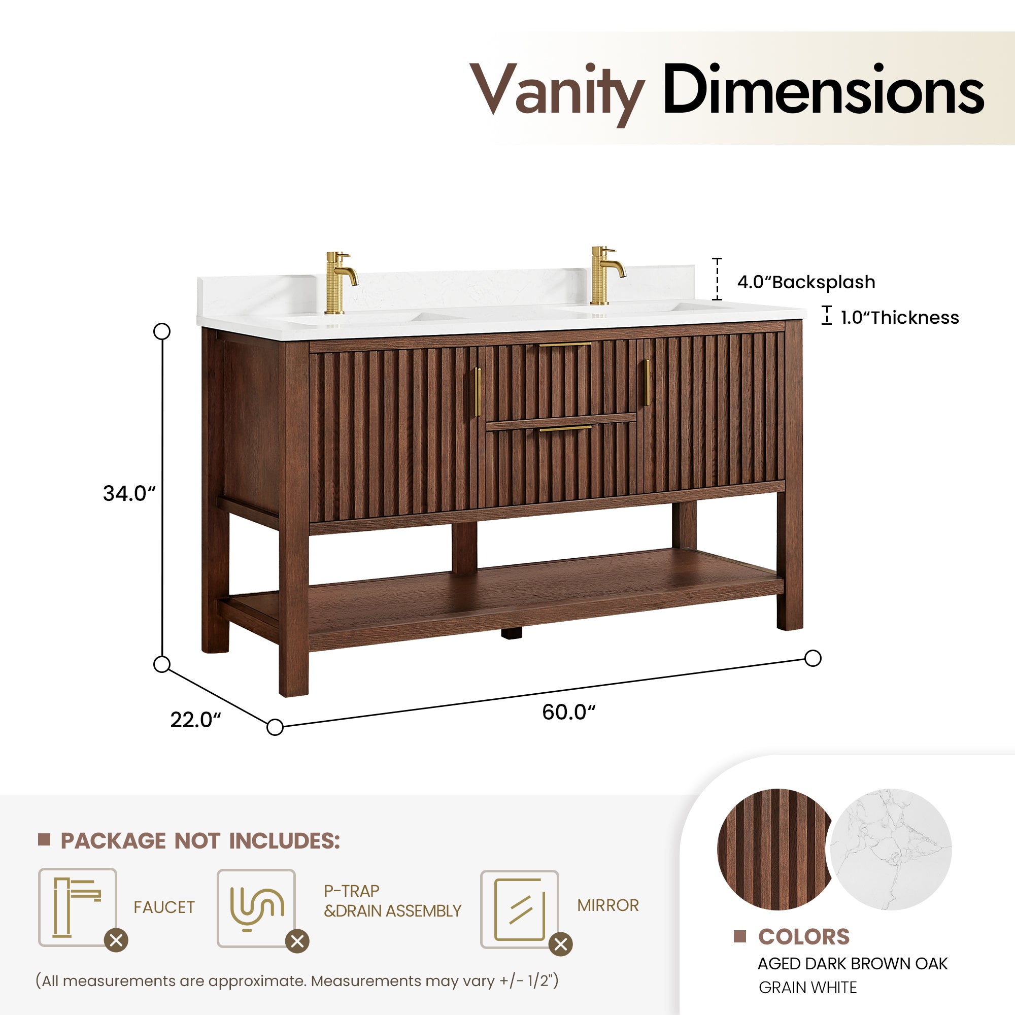 Vitre 60M" Double Sink Bath Vanity in Aged Dark Brown Oak with White Grain Composite Stone Top